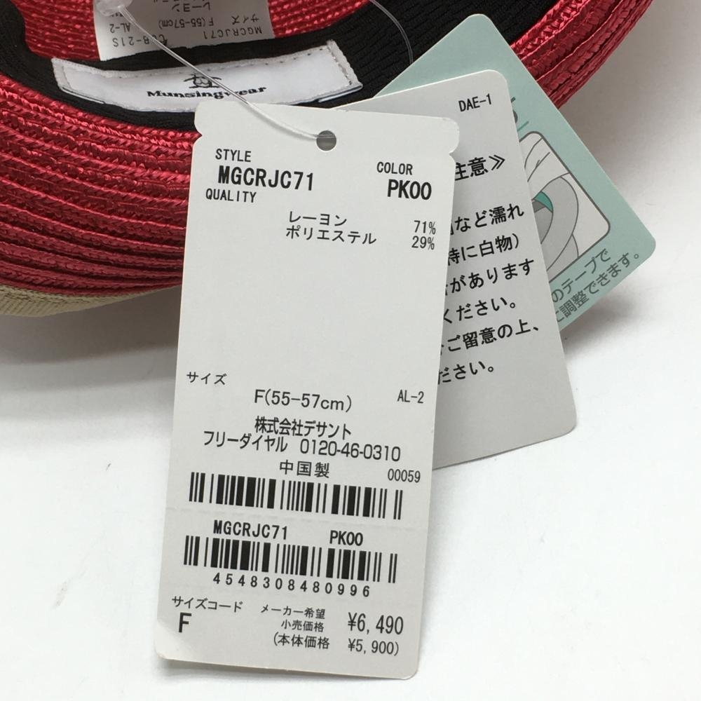 【新品】マンシングウェア 中折れハット レッド×ベージュ ロゴ刺しゅう F(55-57cm) ゴルフウェア Munsingwear
