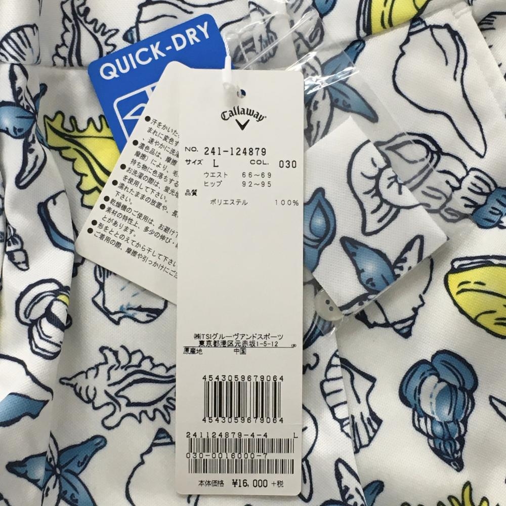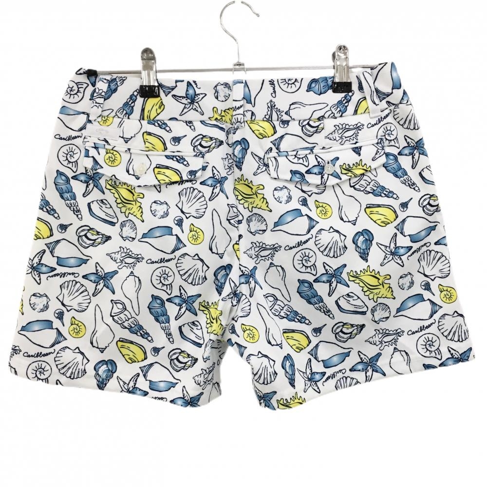【新品】キャロウェイ ショートパンツ 白×ネイビー×イエロー シェル柄 貝殻 速乾 レディース L ゴルフウェア Callaway