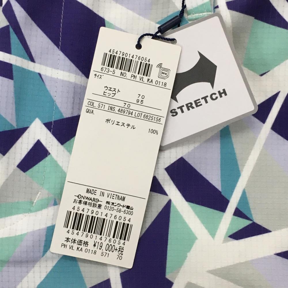 【新品】23区ゴルフ ショートパンツ パープル×白×ミントグリーン 総柄 ストレッチ レディース 70 ゴルフウェア 23区