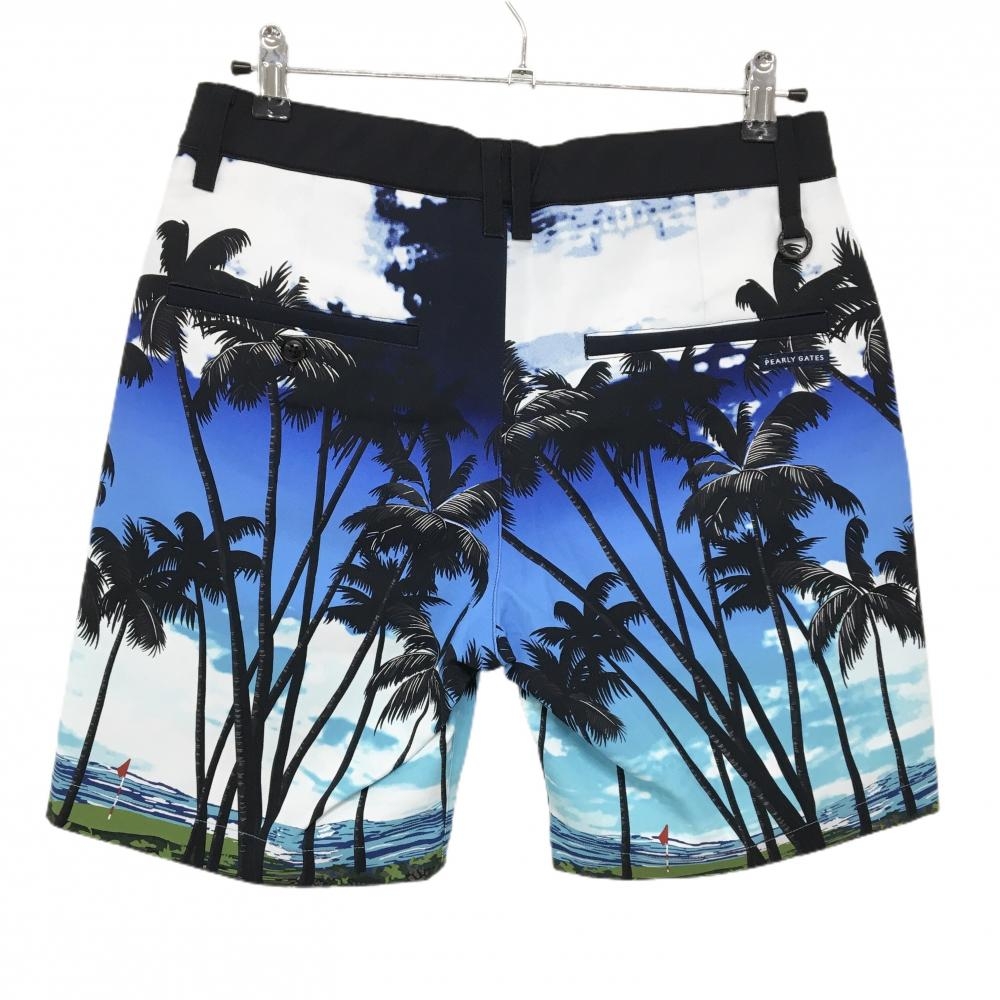 【新品】パーリーゲイツ ハーフパンツ ブルー系×白 ヤシの木柄 メンズ 4(M) ゴルフウェア PEARLY GATES