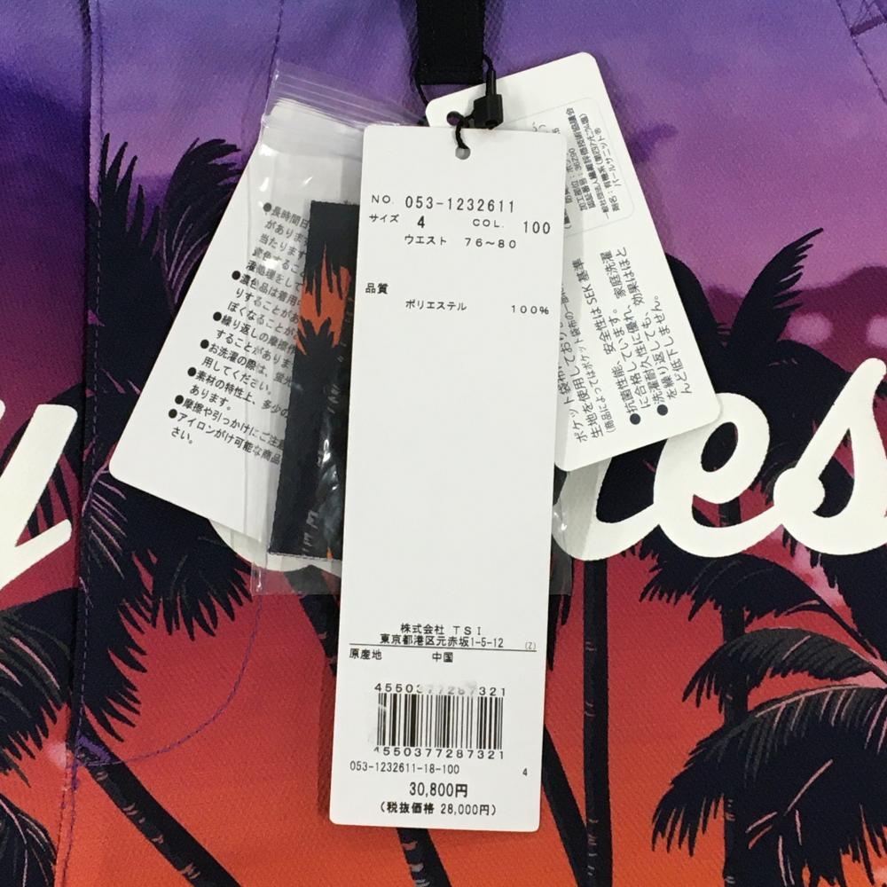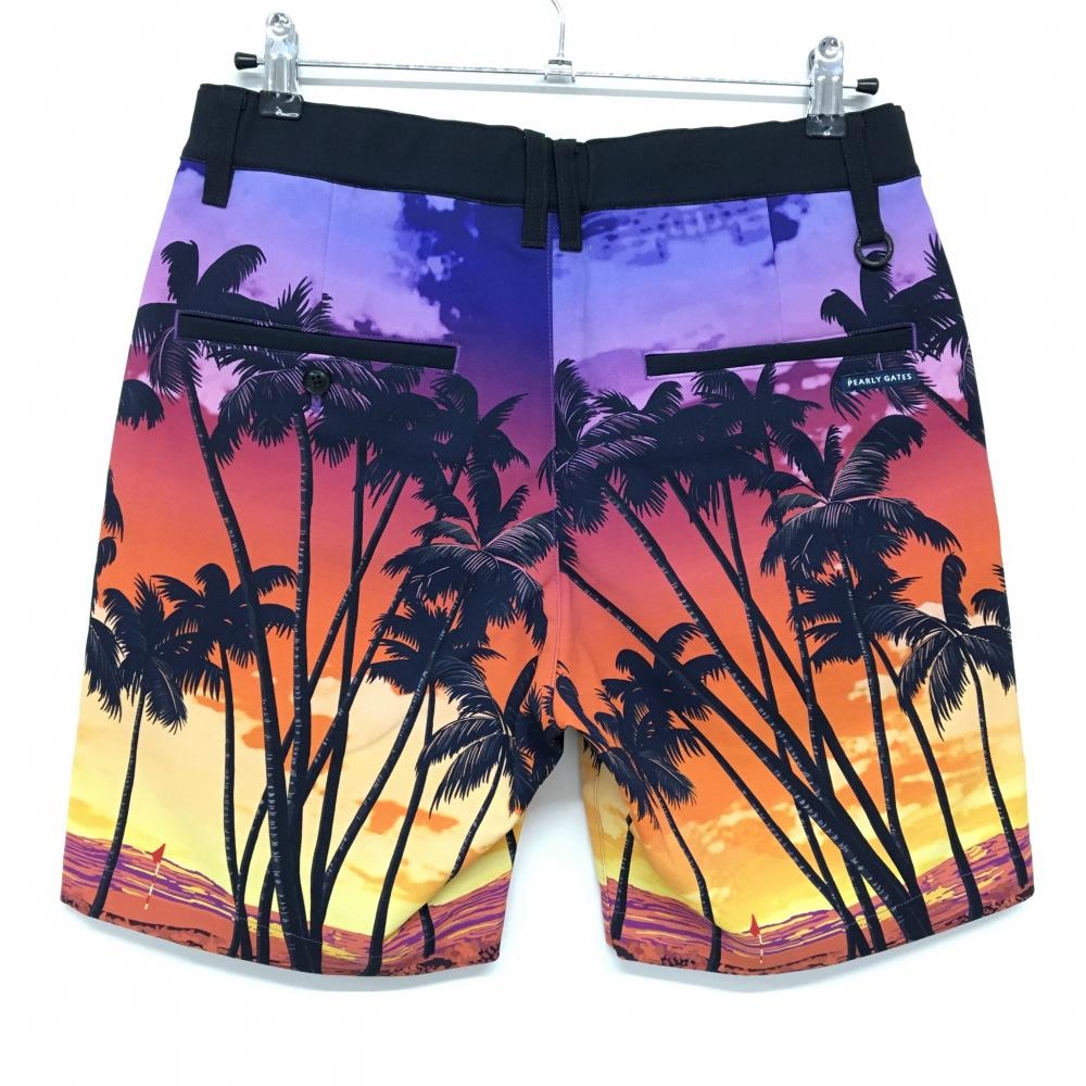 【新品】パーリーゲイツ ハーフパンツ オレンジ系×パープル ヤシの木柄 メンズ 4(M) ゴルフウェア PEARLY GATES