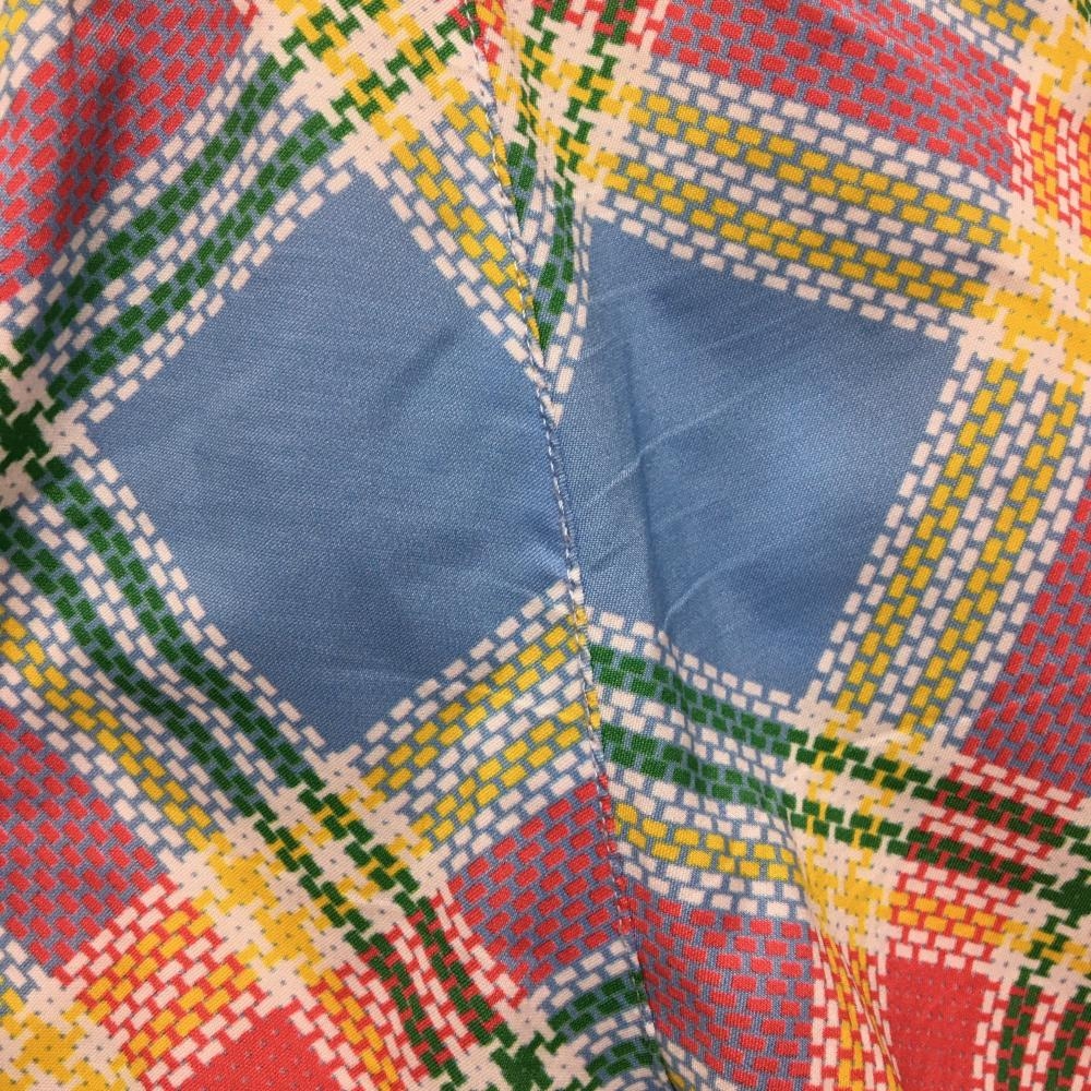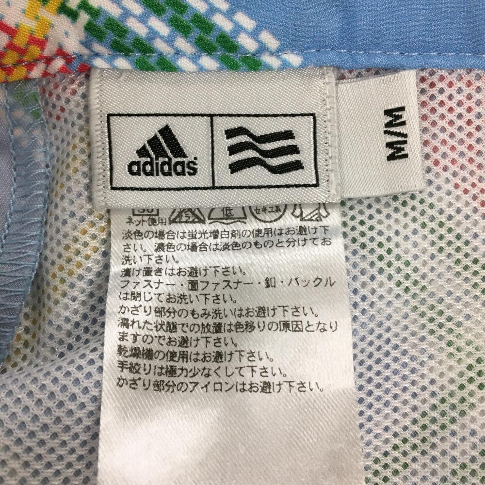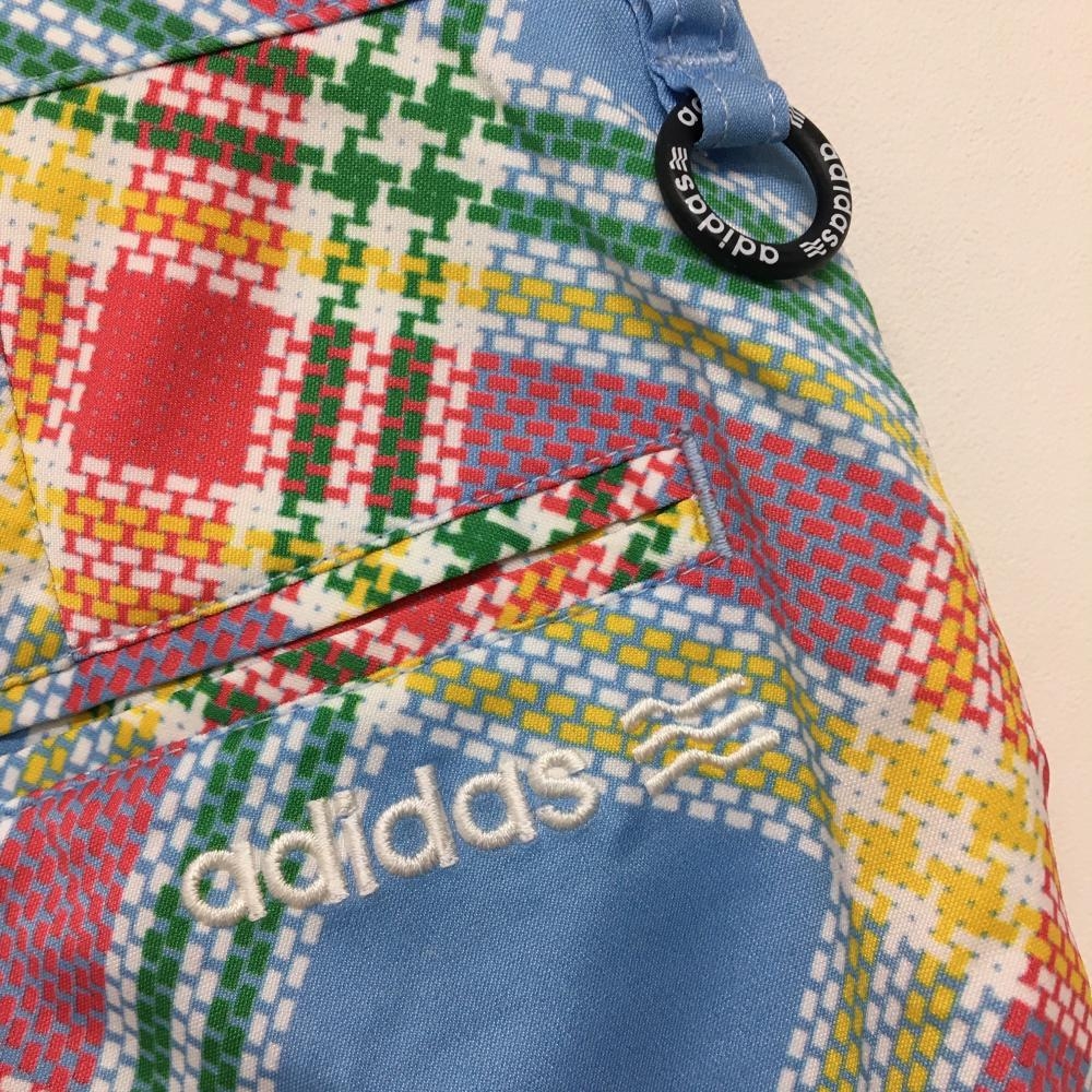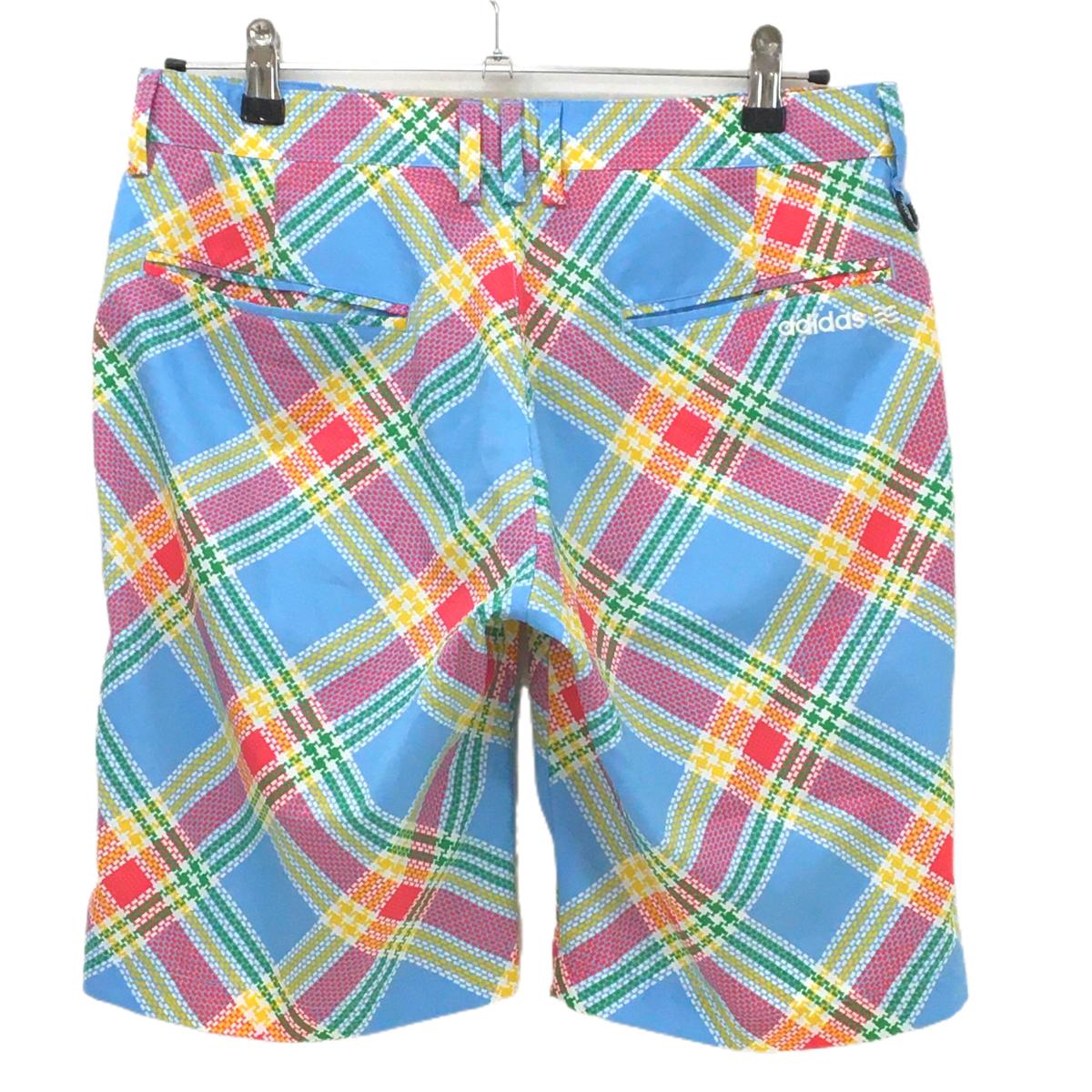 【美品】アディダス ハーフパンツ ライトブルー×レッドピンク チェック柄 バックロゴ メンズ M/M ゴルフウェア adidas