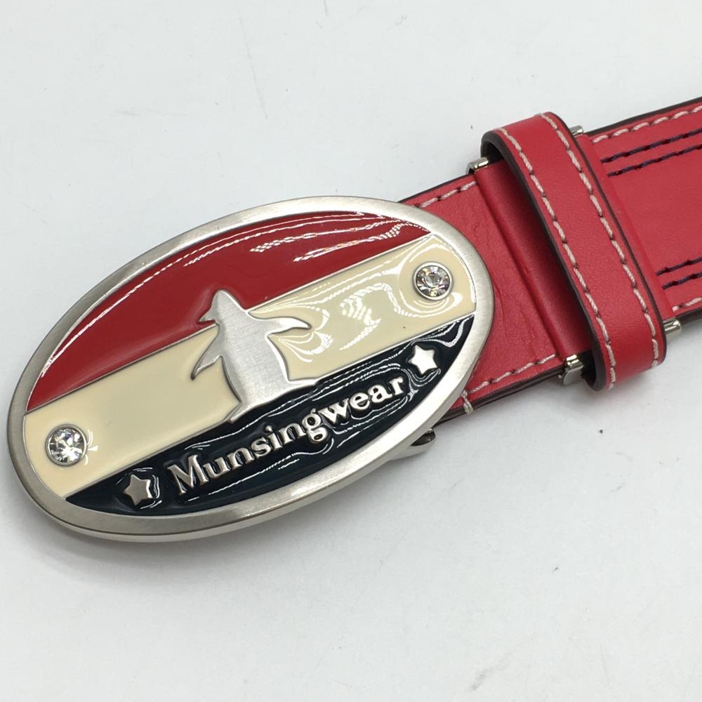 マンシングウェア トップ式ベルト レッド×ネイビー ロゴ型押し レディース ゴルフウェア Munsingwear