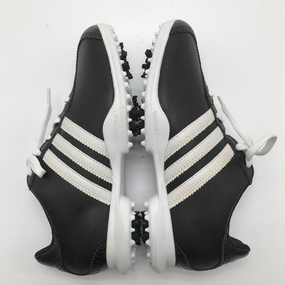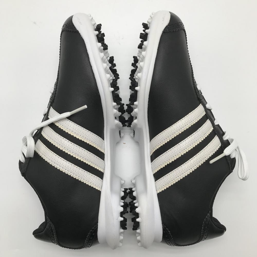 【超美品】アディダス ゴルフシューズ 黒×白 EVG791003 3ライン ウイングチップ レディース 23.0 ゴルフウェア adidas