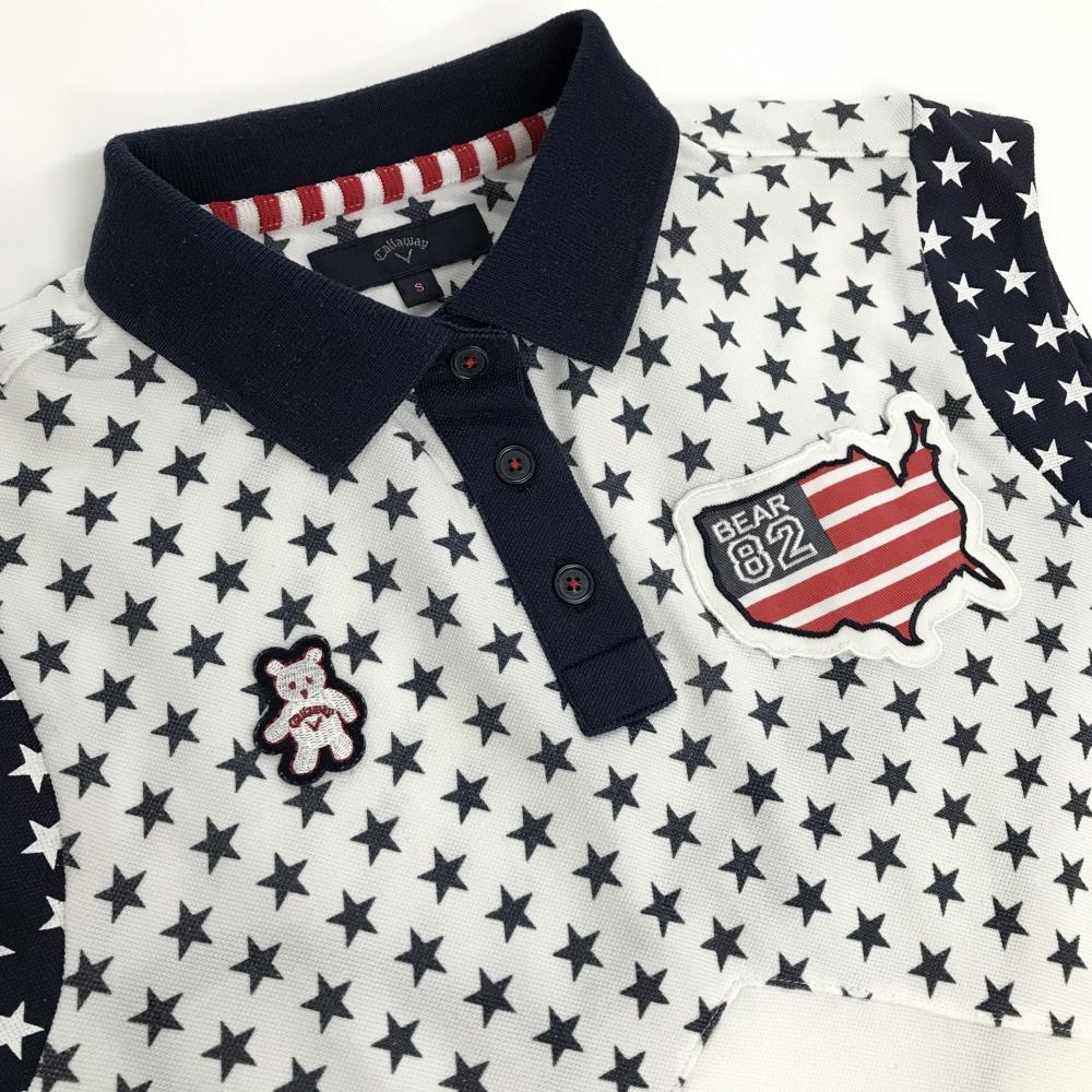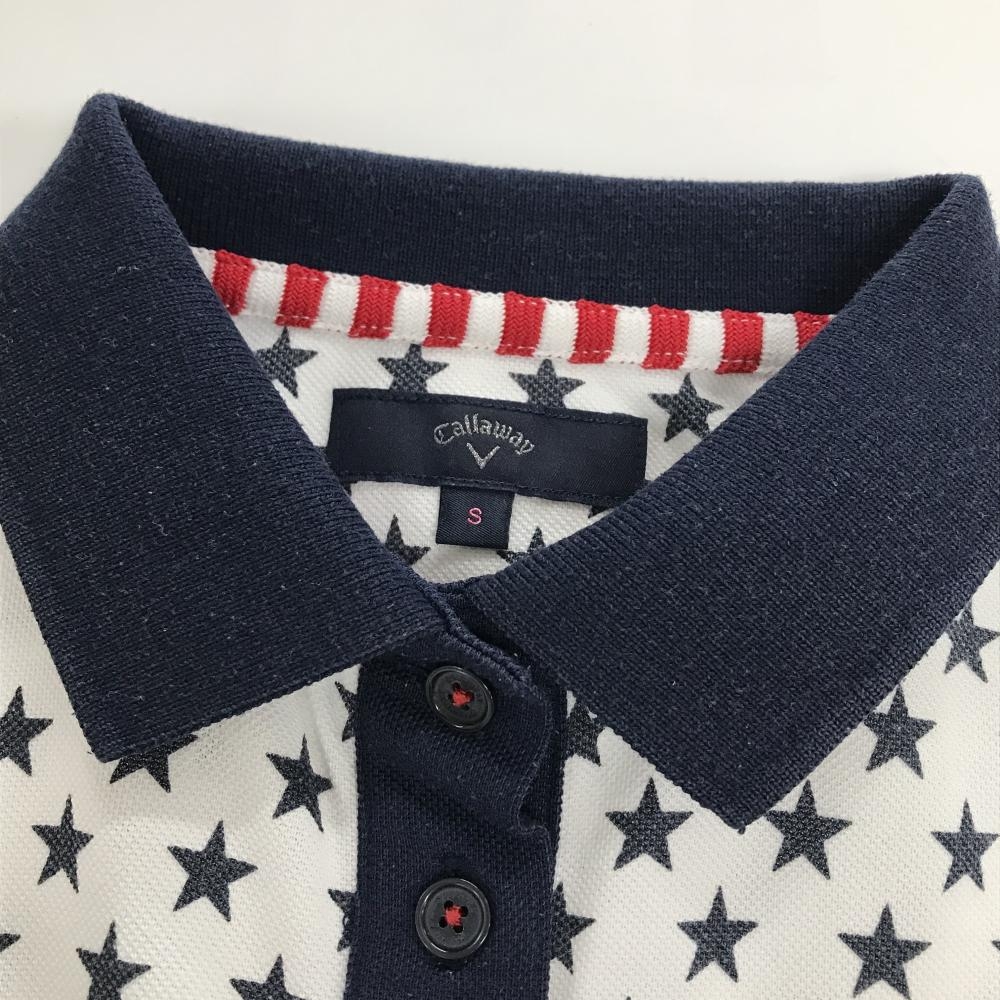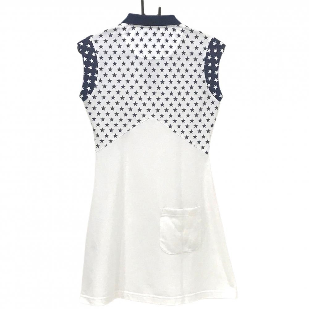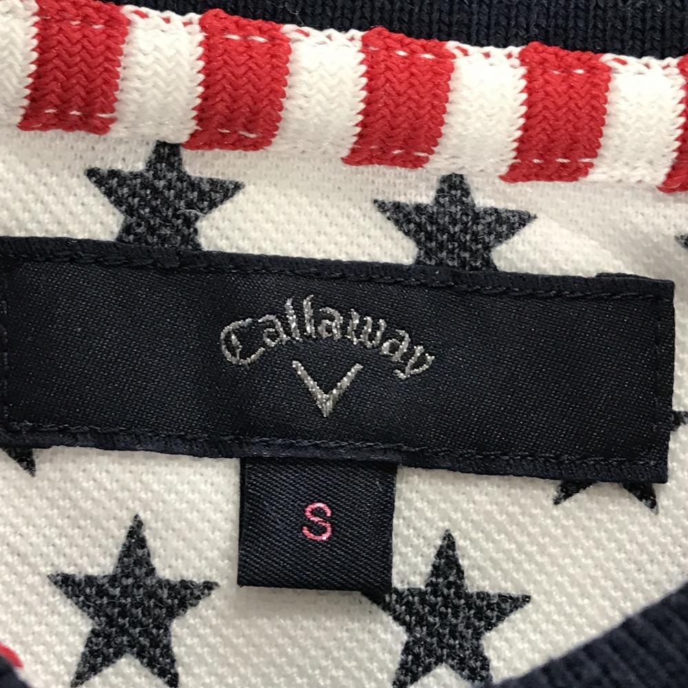 キャロウェイ ノースリーブポロワンピース 白×ネイビー×レッド 上部星柄 レディース S ゴルフウェア Callaway