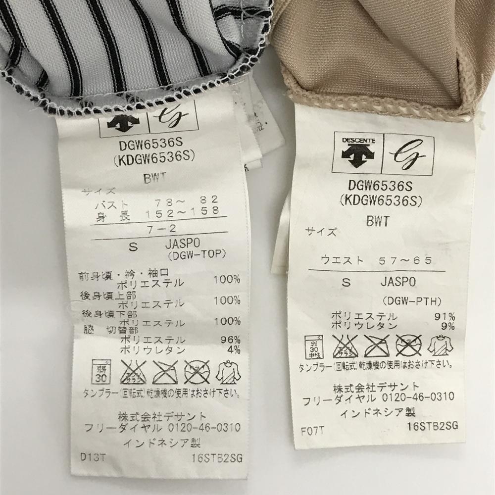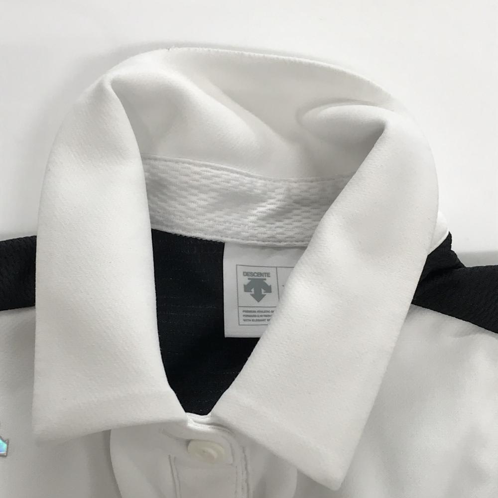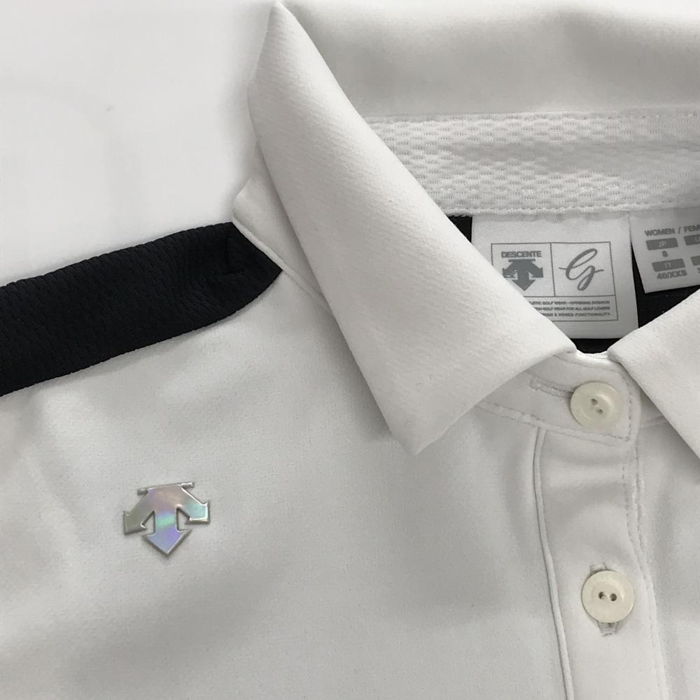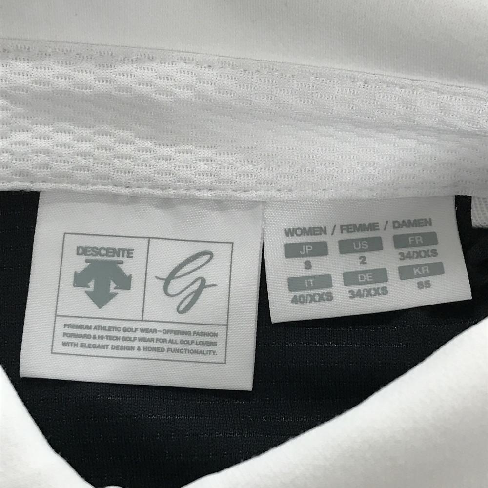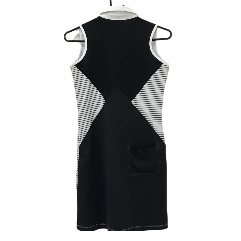デサントゴルフ ノースリーブポロワンピース 白×黒 一部ボーダー 後ろ一部メッシュ地 レディース S ゴルフウェア DESCENTE