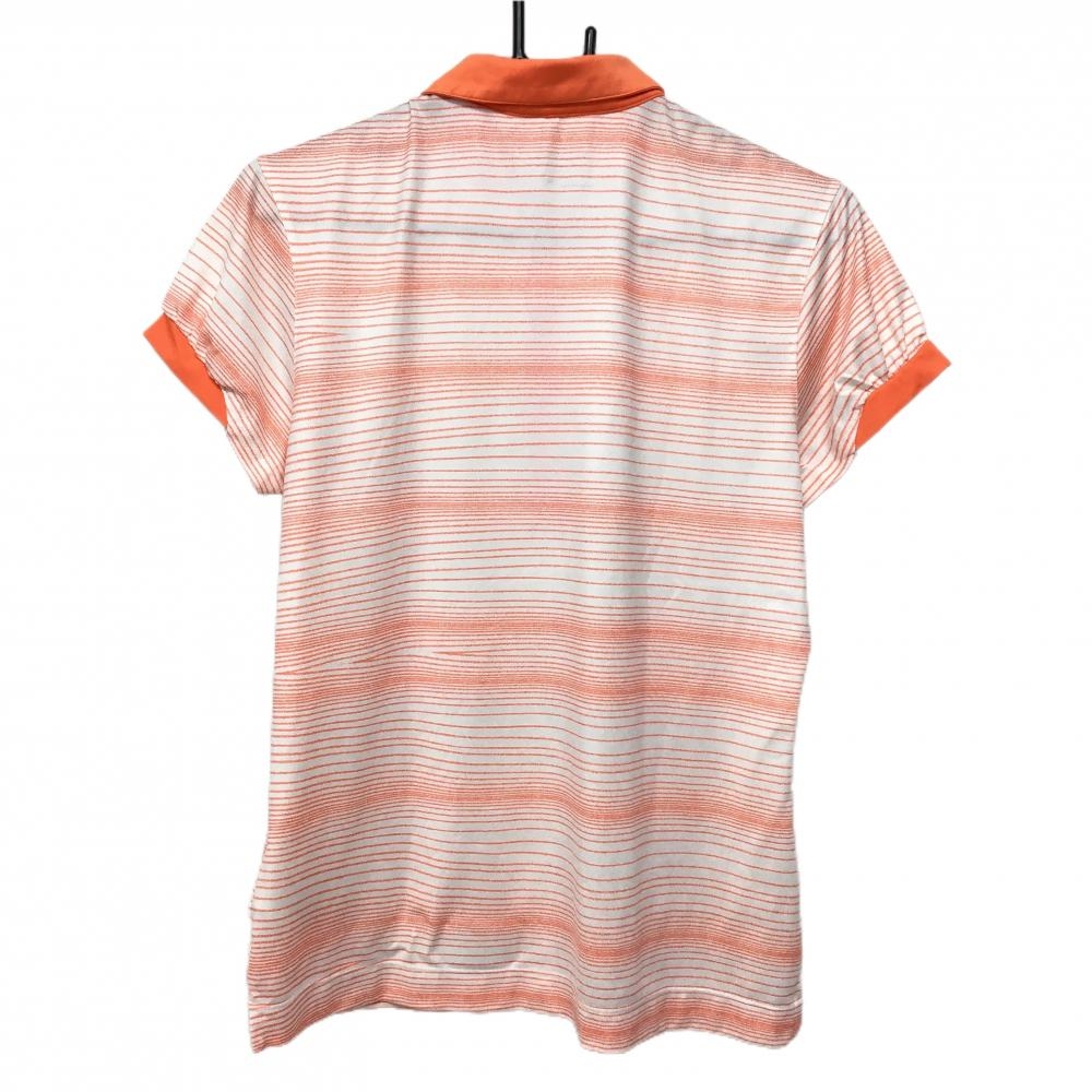 【超美品】ナイキゴルフ 半袖ポロシャツ 白×オレンジ ボーダー 裾ロゴ DRI-FIT レディース L ゴルフウェア NIKE