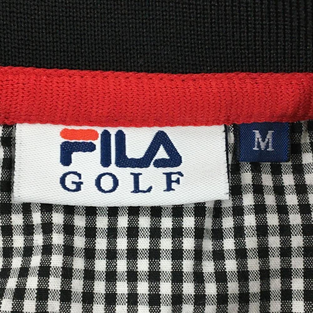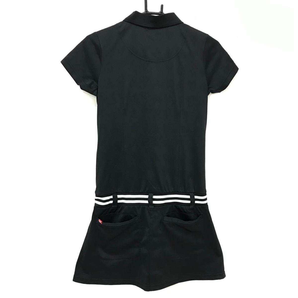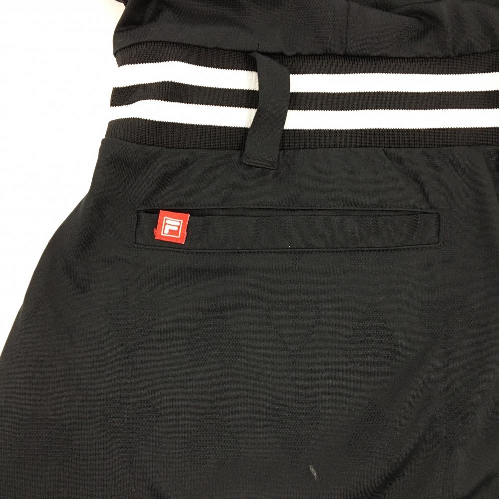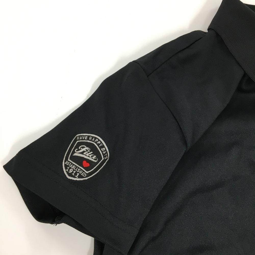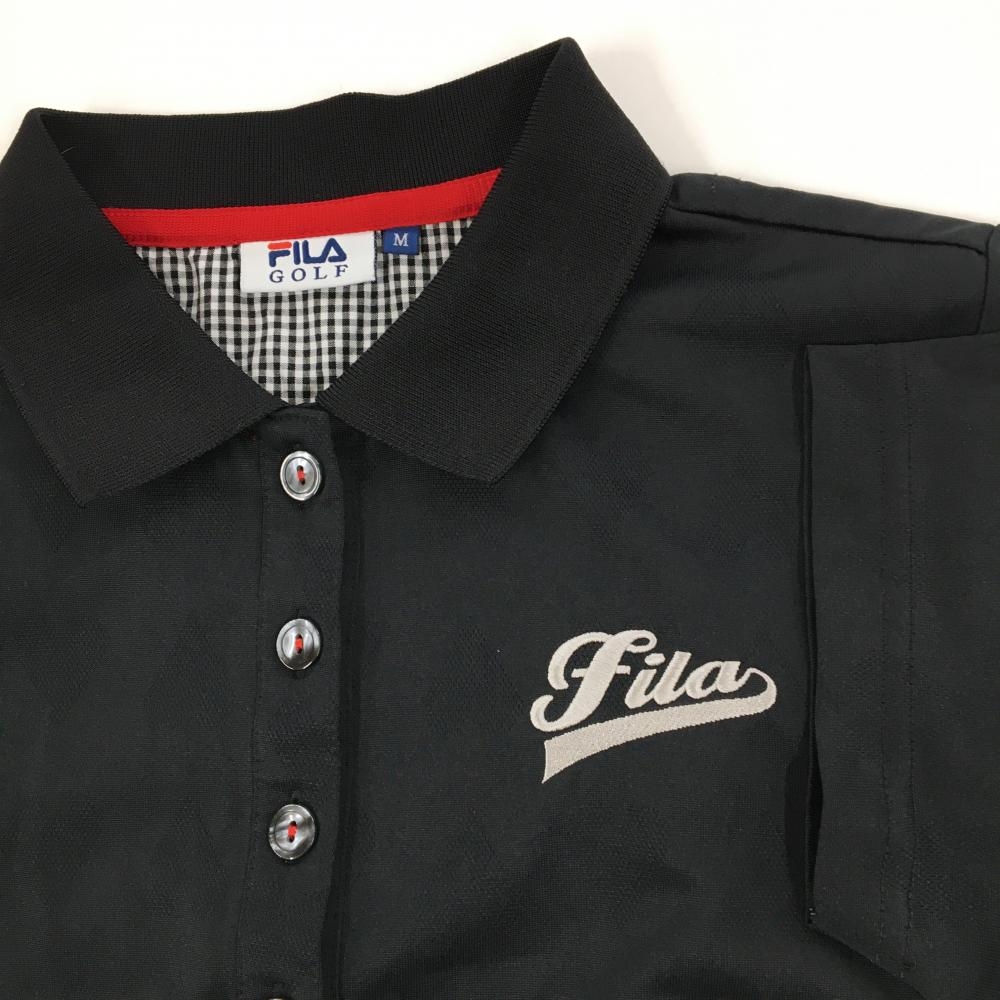 【超美品】フィラゴルフ 半袖ポロワンピース 黒 ハート柄地模様 ティー装着可 レディース M ゴルフウェア FILA GOLF