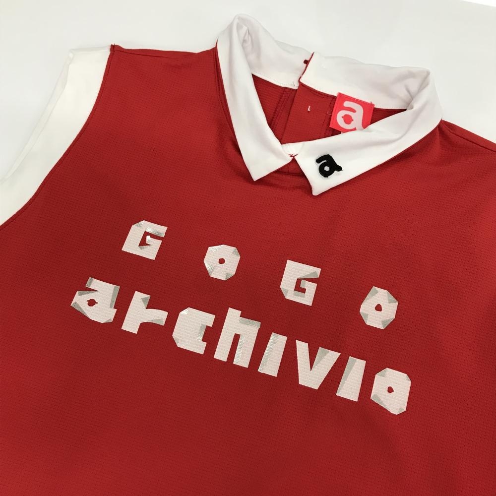 【超美品】アルチビオ 襟付きノースリーブシャツ レッド×白 フロントロゴ レディース 38(M) ゴルフウェア archivio