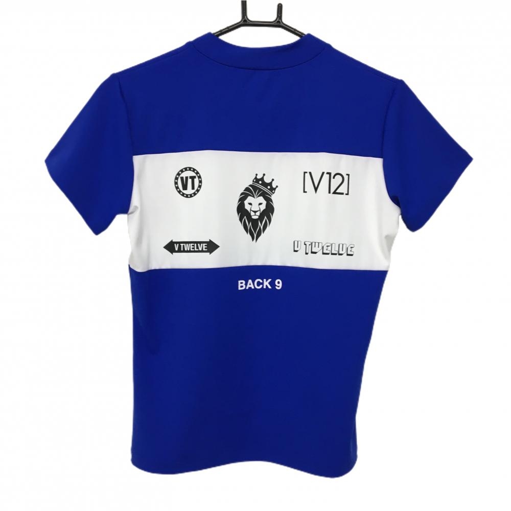 【超美品】V12 半袖ハイネックシャツ ブルー×白 フロントロゴ レディース 1(M) ゴルフウェア V12