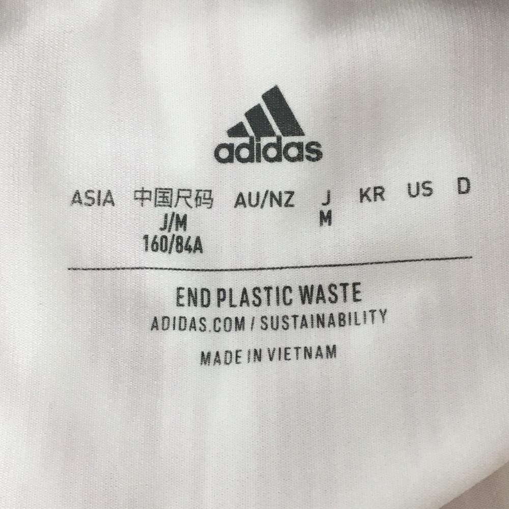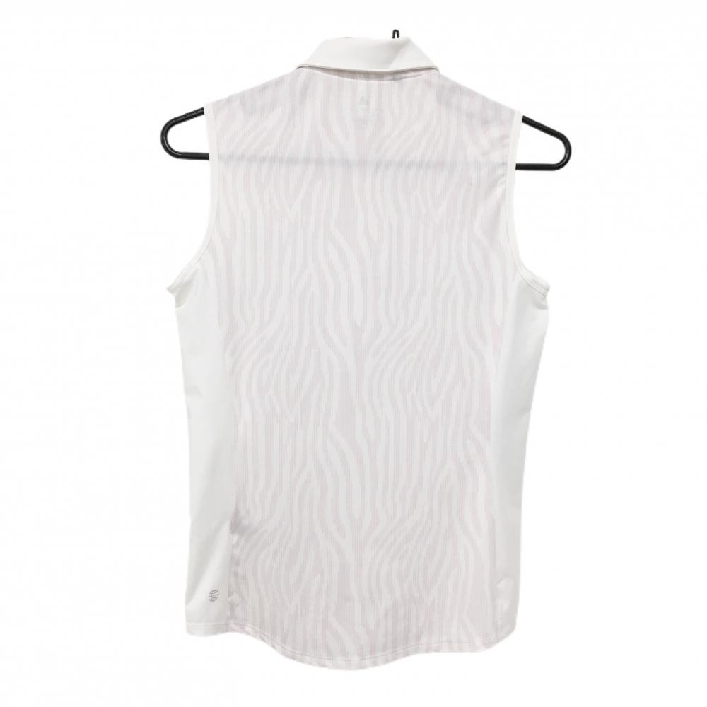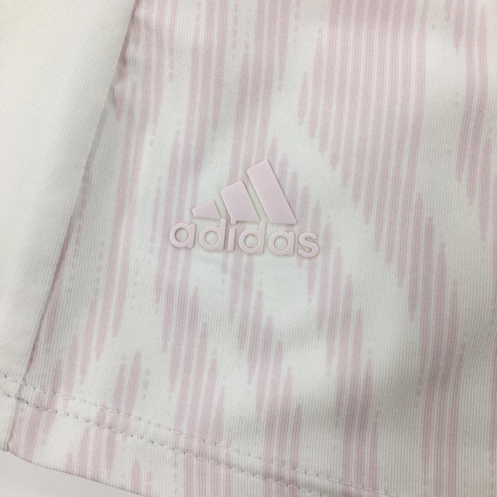 【超美品】アディダス ノースリーブポロシャツ 白×ピンク ゼブラ調 裾ロゴ レディース M ゴルフウェア adidas