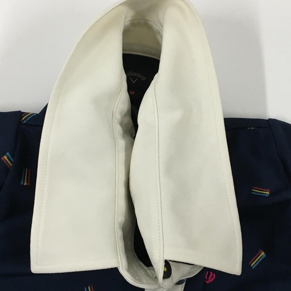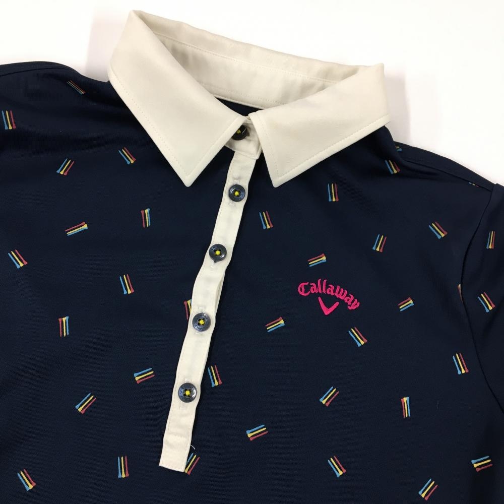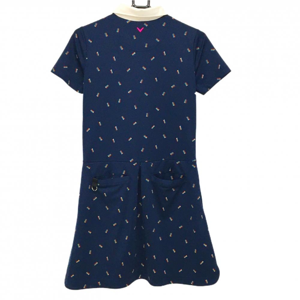 キャロウェイ 半袖ポロワンピース ネイビー×白 ティー柄 レディース M ゴルフウェア Callaway