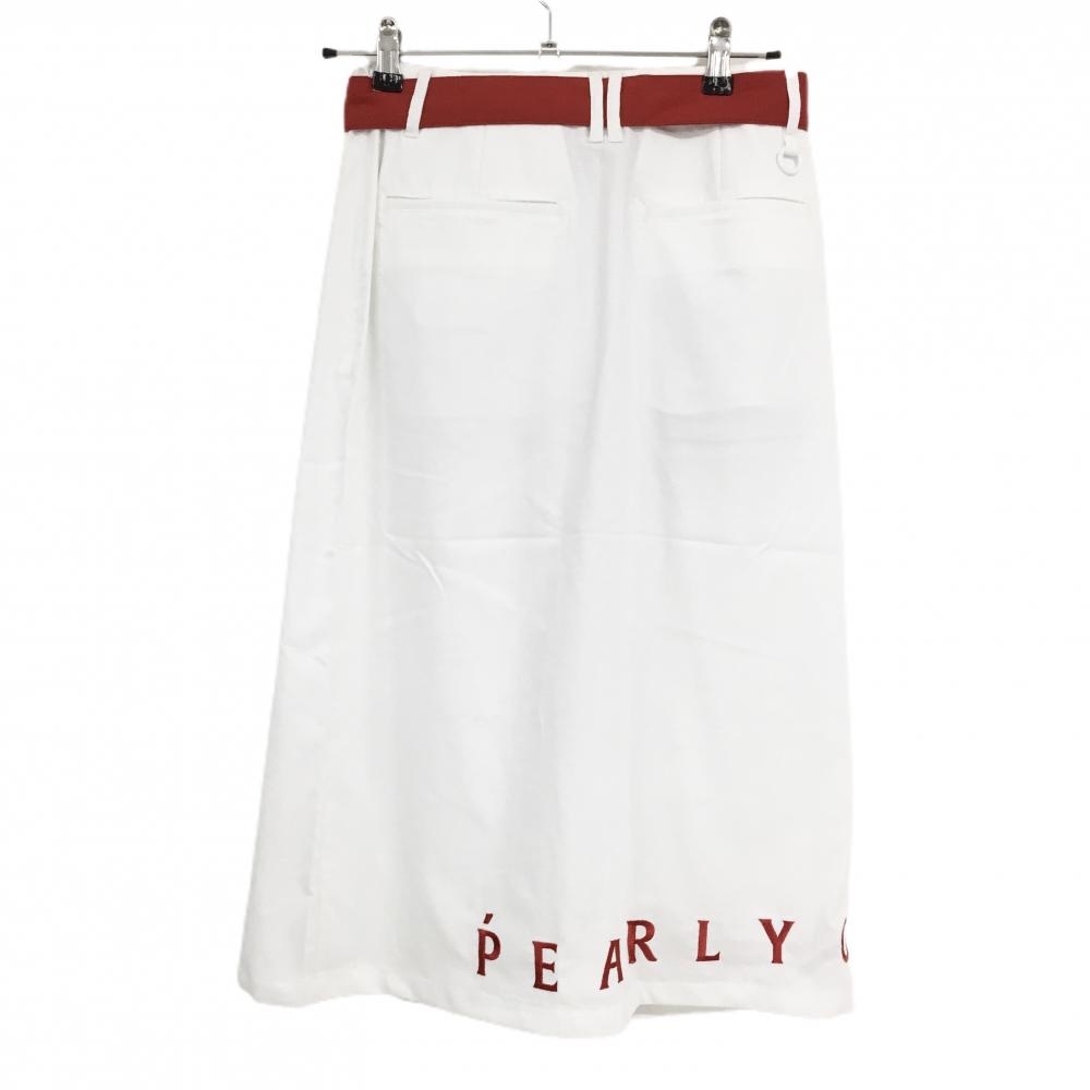 【新品】パーリーゲイツ スカート 白×レッド 裾ロゴ刺しゅう 共布ベルト付 レディース 0(S) ゴルフウェア PEARLY GATES