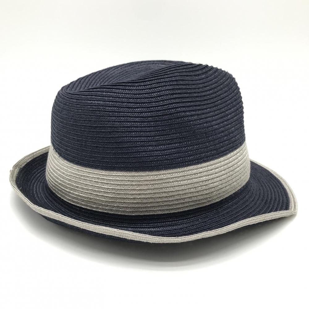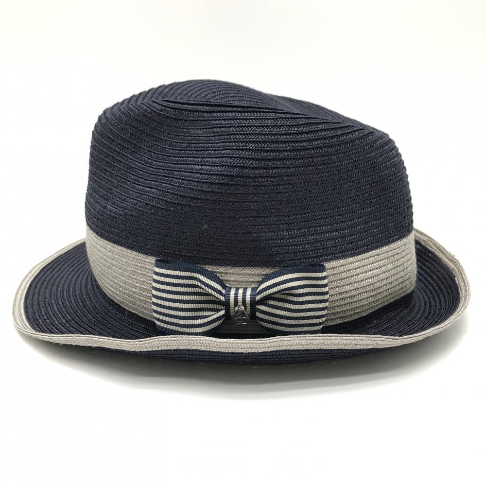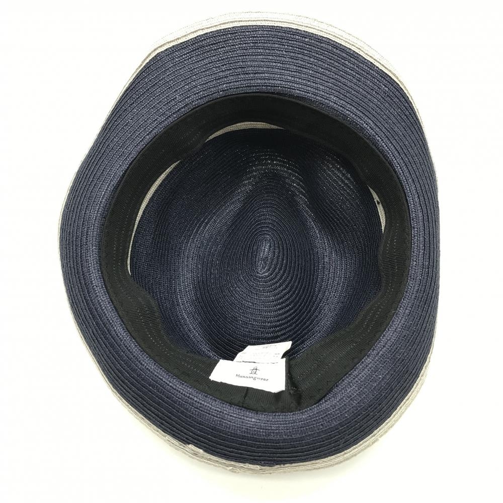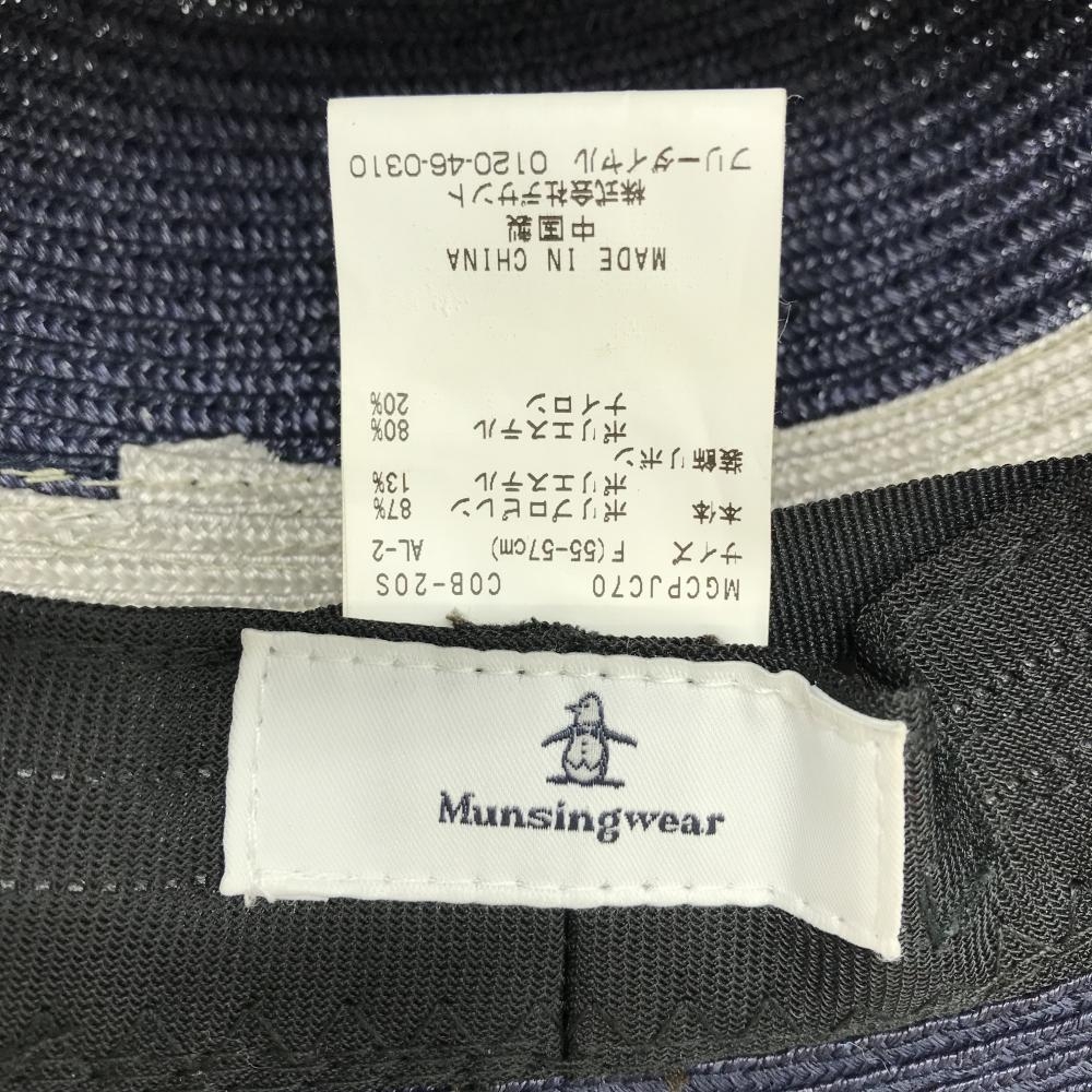 【超美品】マンシングウェア 中折れハット ネイビー×グレー サイドロゴ レディース F(55-57cm) ゴルフウェア Munsingwear