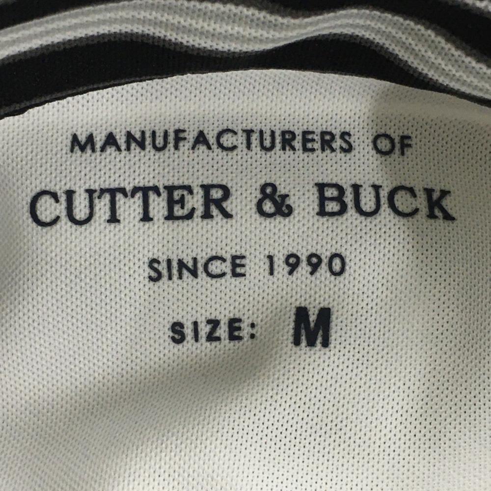 【新品】カッターアンドバック 半袖ポロシャツ 黒×グレー×白 ボーダー ボタンダウン 吸水速乾 メンズ M ゴルフウェア CUTTER&BUCK