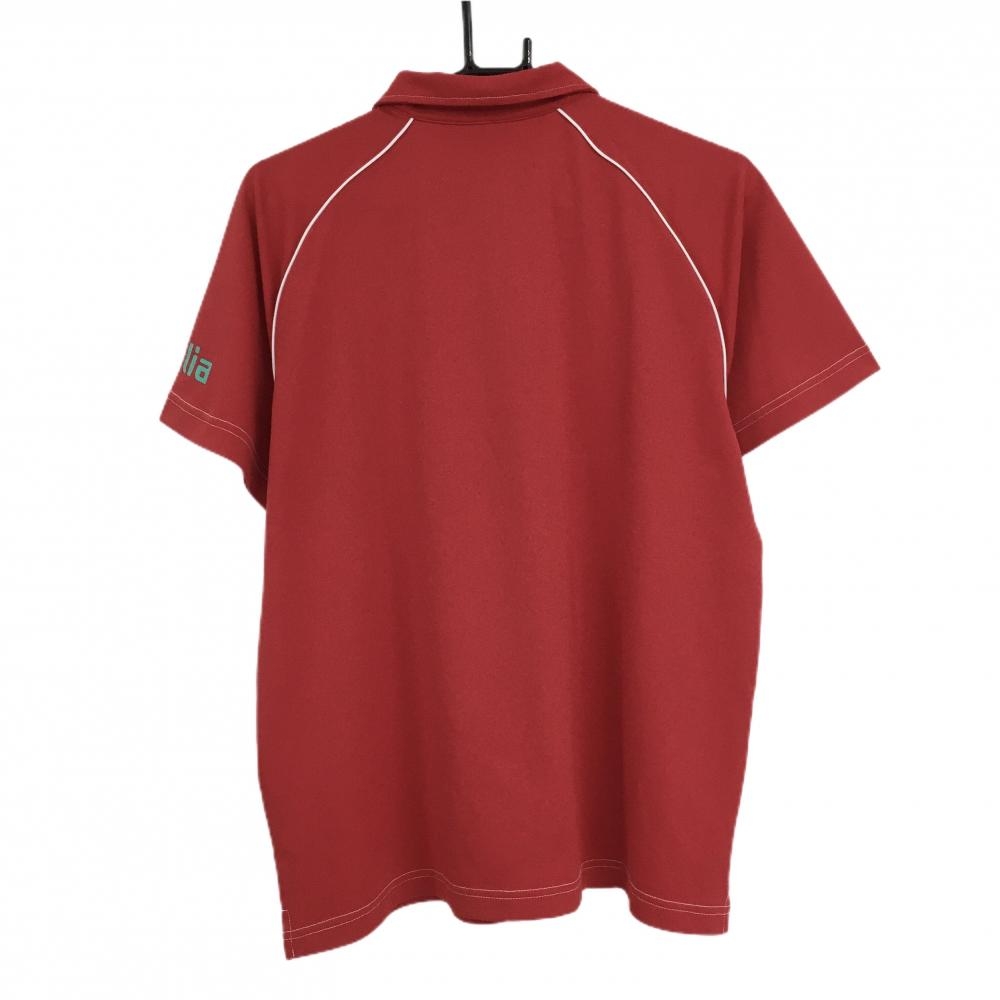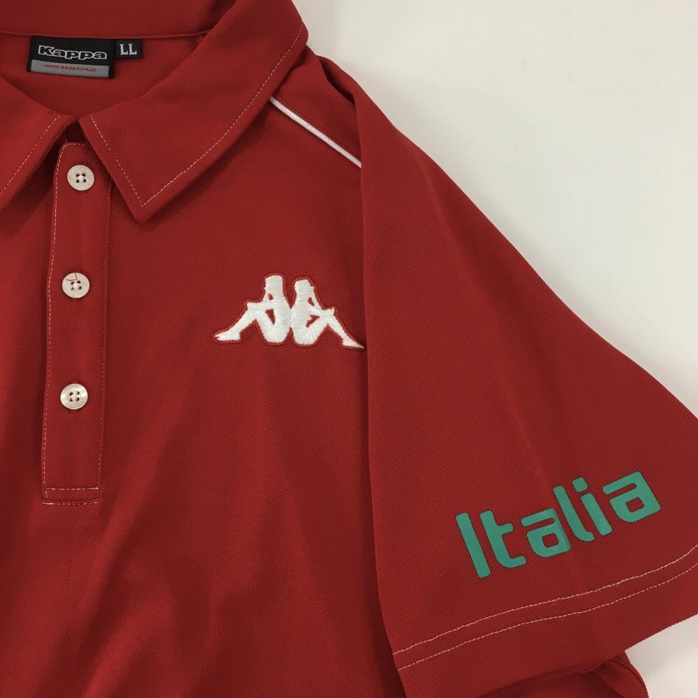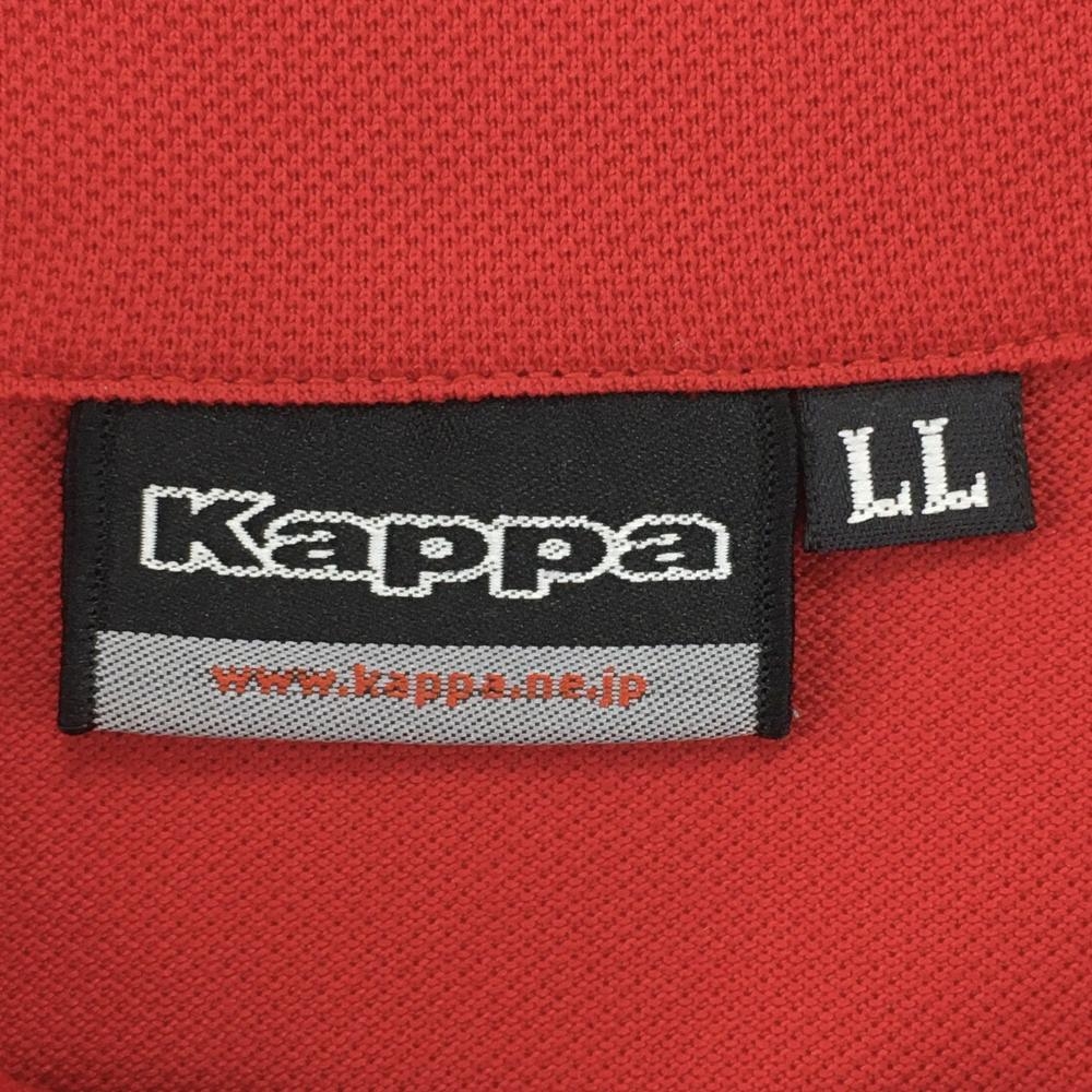 【美品】カッパ 半袖ポロシャツ レッド×白 胸元ロゴ 袖プリント メンズ LL ゴルフウェア Kappa