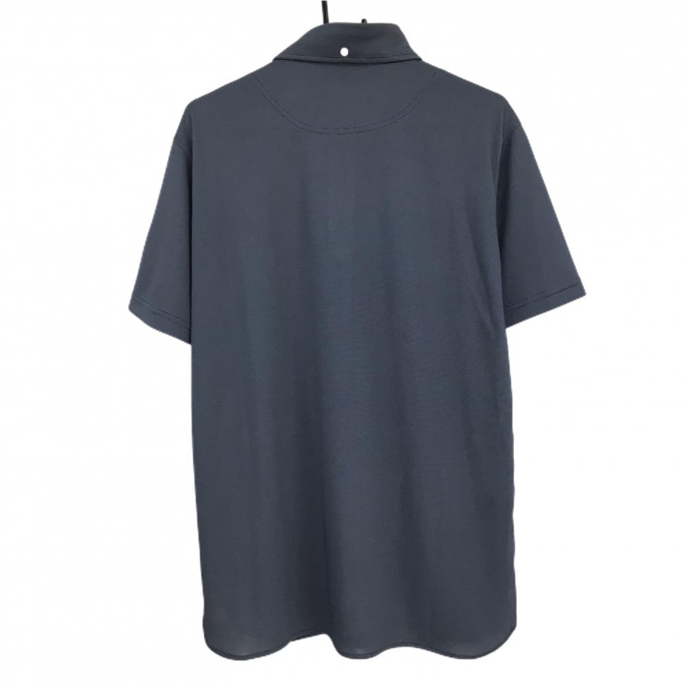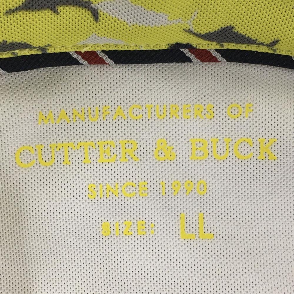 【美品】カッターアンドバック 半袖ポロシャツ ネイビー×イエロー ロゴ刺しゅう ネック内側魚柄 メンズ LL ゴルフウェア CUTTER&BUCK