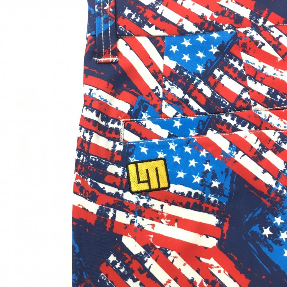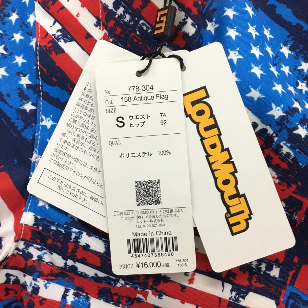 【新品】ラウドマウス パンツ レッド×ライトブルー×白 星条旗柄 ストレッチ メンズ S ゴルフウェア LOUDMOUTH