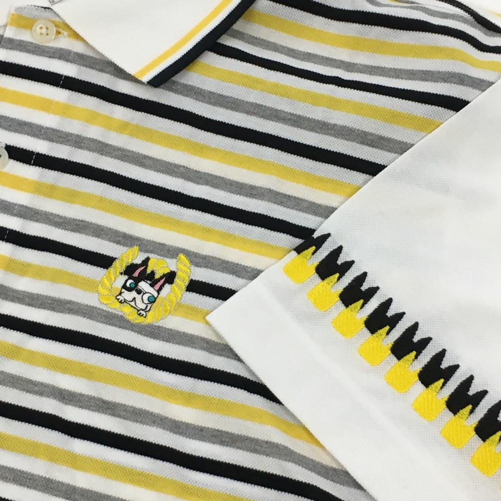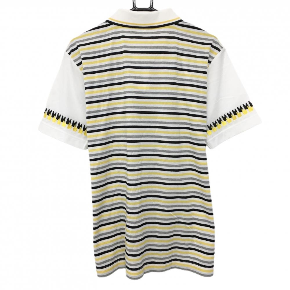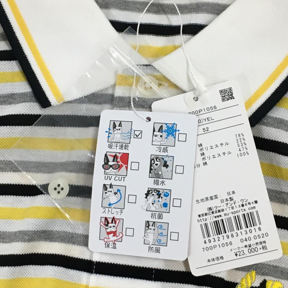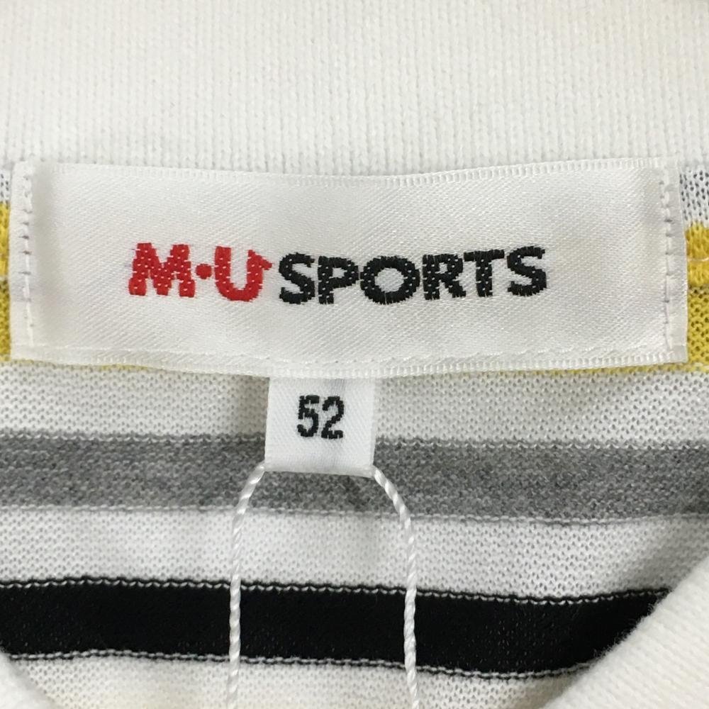 【新品】MUスポーツ 半袖ポロシャツ 白×イエロー×黒 身頃ボーダー 吸汗速乾 メンズ 52 ゴルフウェア M・U SPORTS