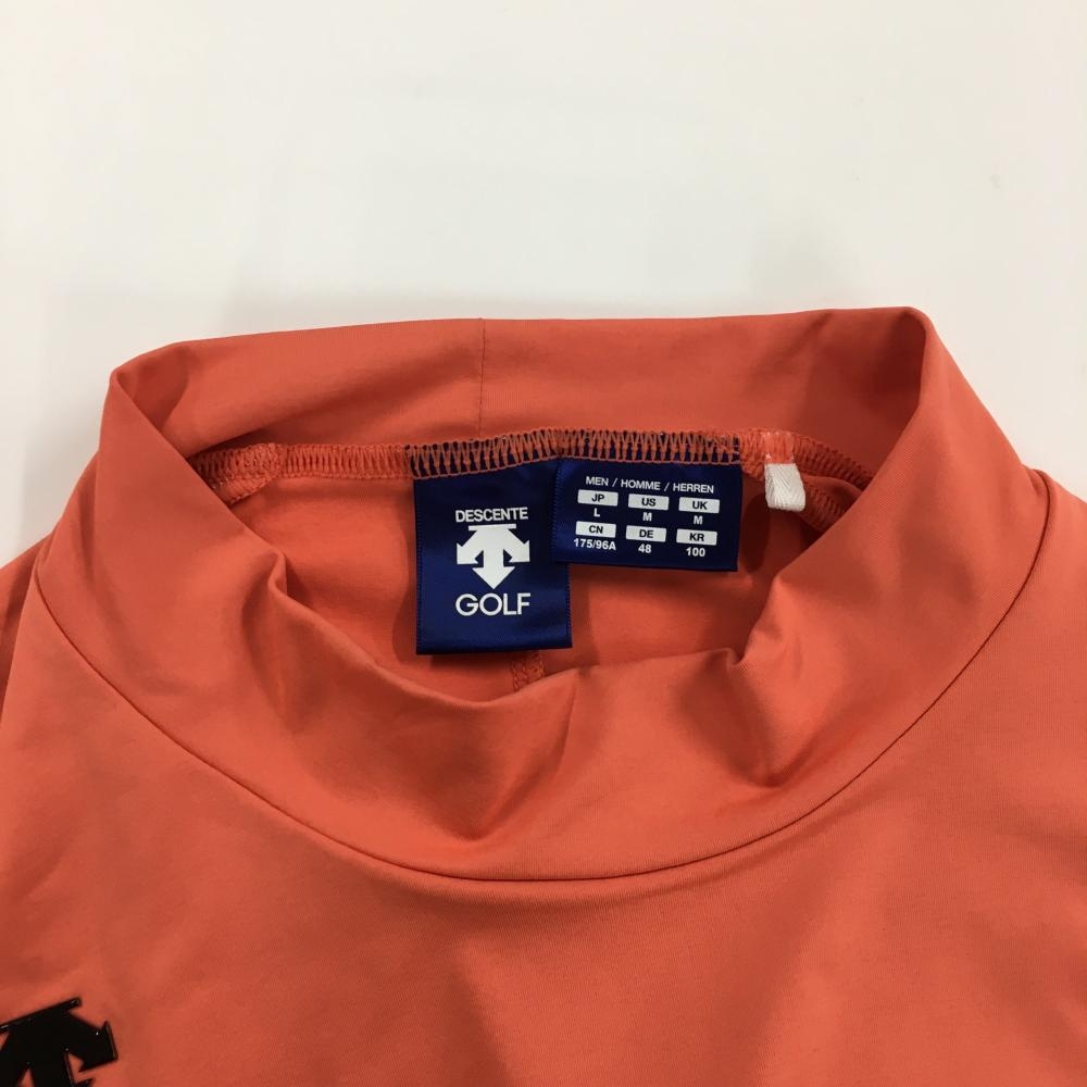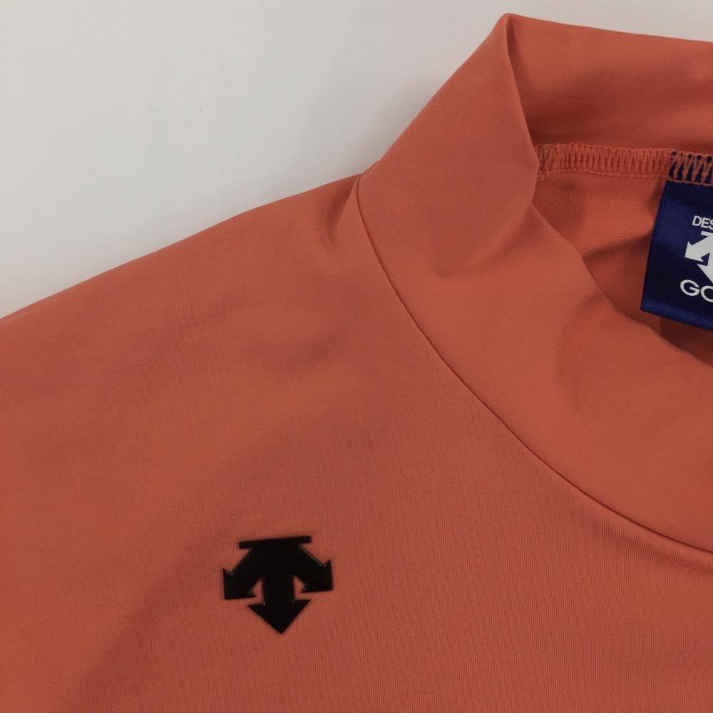 デサントゴルフ 半袖ハイネックシャツ オレンジ×黒 フロントロゴプリント 中田英寿 メンズ L ゴルフウェア DESCENTE