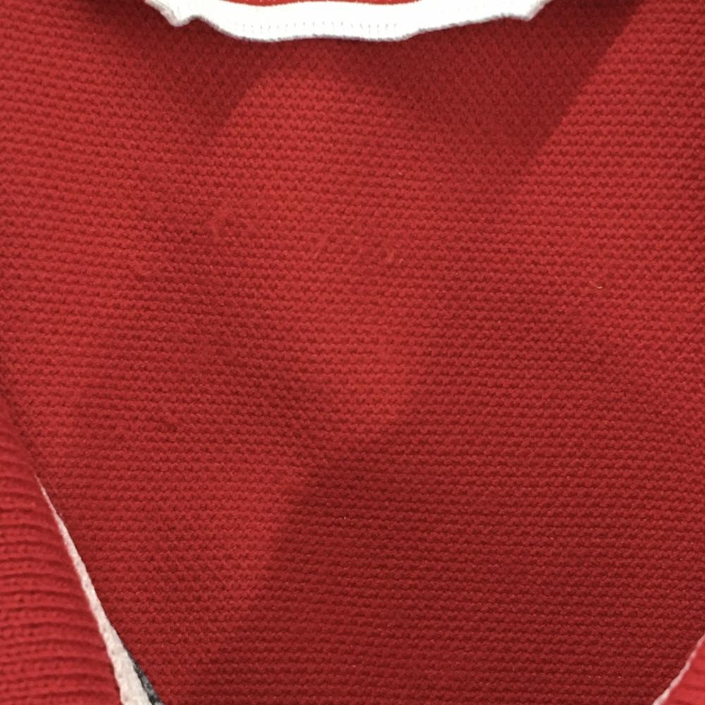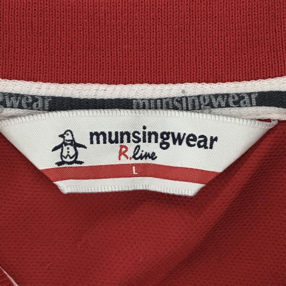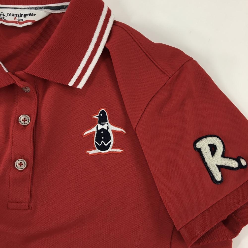 【美品】マンシングウェア 半袖ポロシャツ レッド×白 胸元ロゴ 袖ワッペン レディース L ゴルフウェア Munsingwear