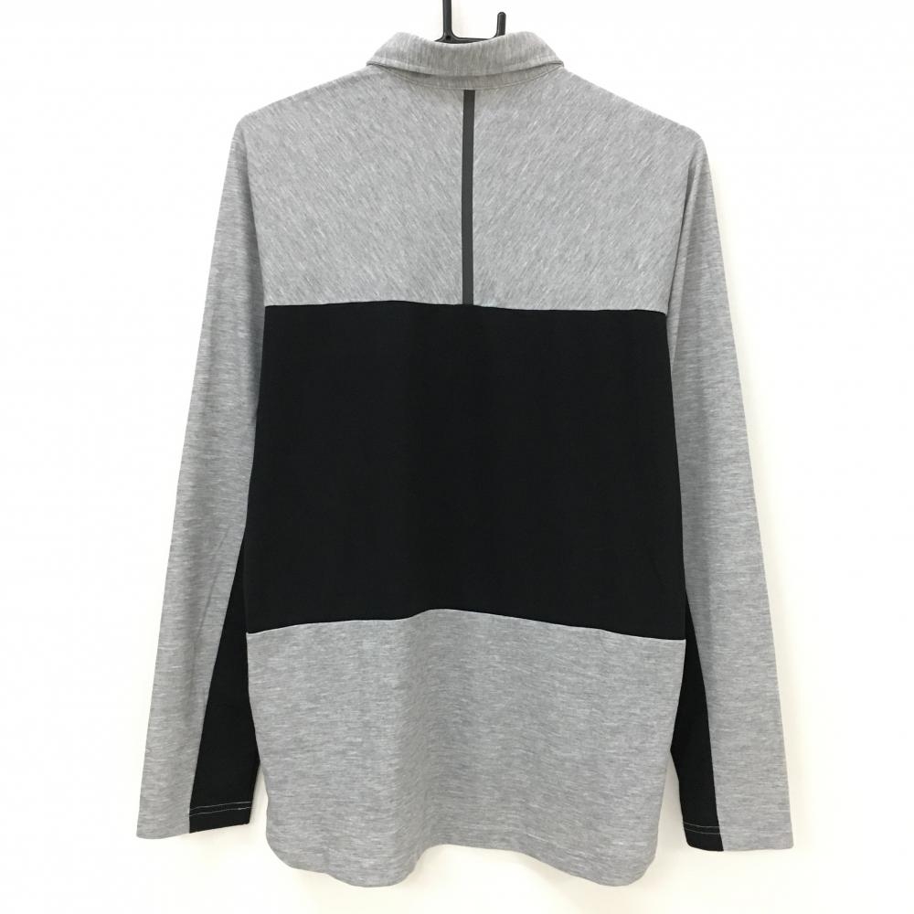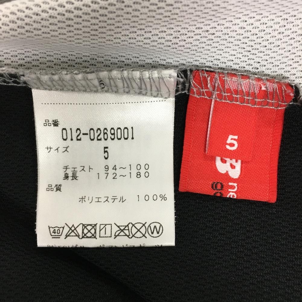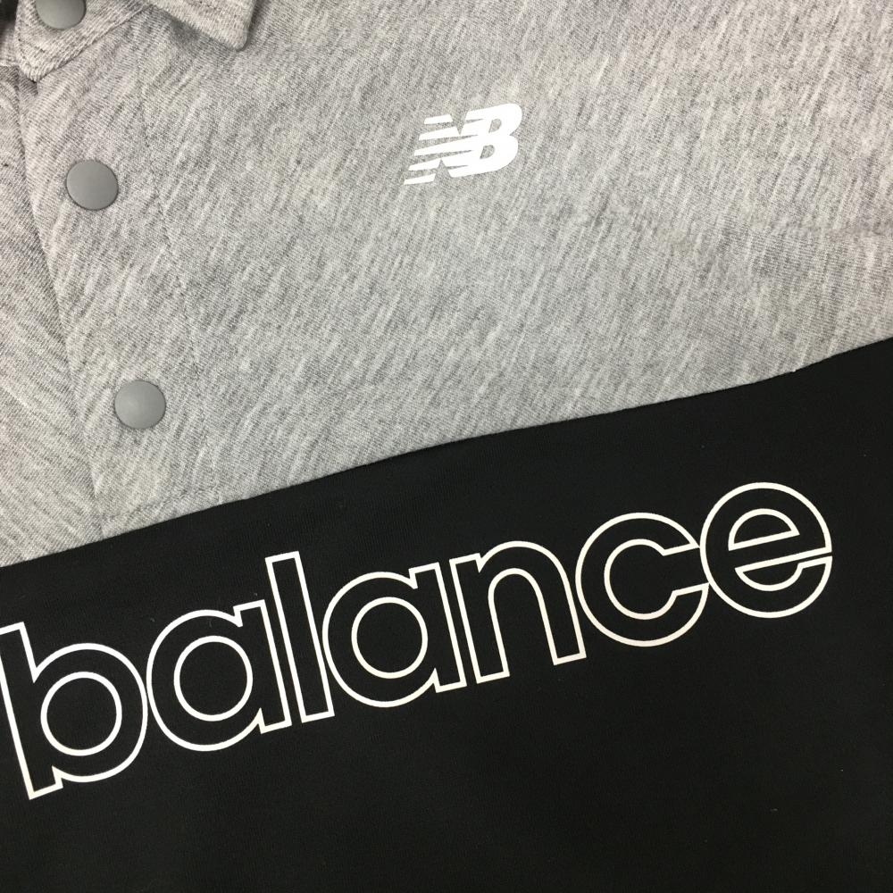 【超美品】ニューバランスゴルフ 長袖ポロシャツ 杢グレー×黒 ロゴプリント スナップボタン メンズ 5(L) ゴルフウェア New Balance