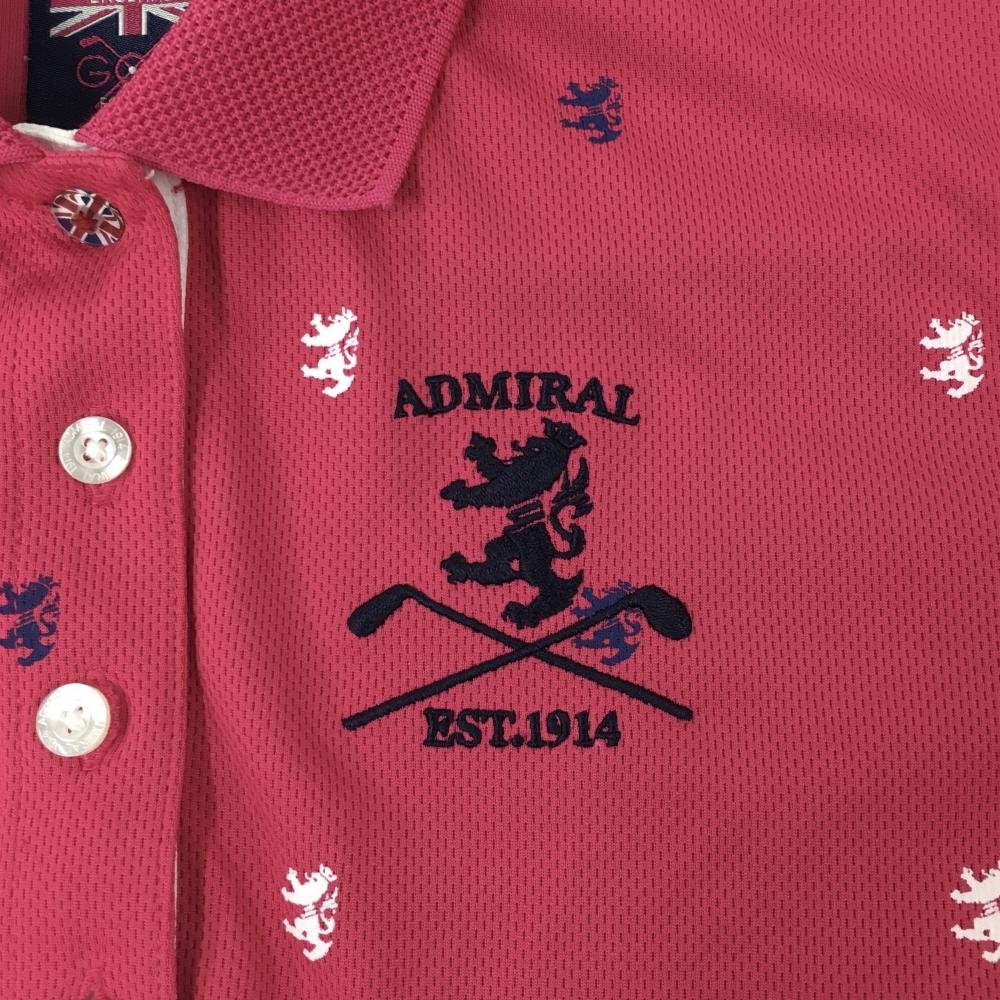 【美品】アドミラル 半袖ポロシャツ ピンク×ネイビー 総柄 レディース M ゴルフウェア Admiral