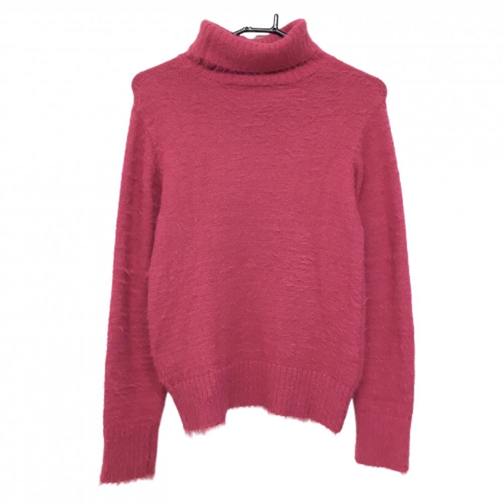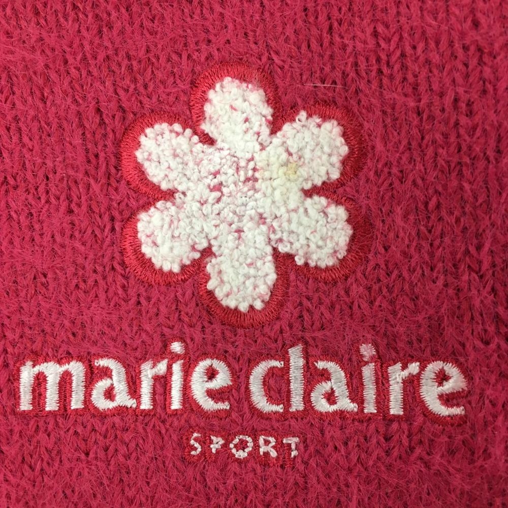 【美品】マリクレール タートルネックセーター ピンク ロゴ白 ニット レディース M ゴルフウェア marie claire