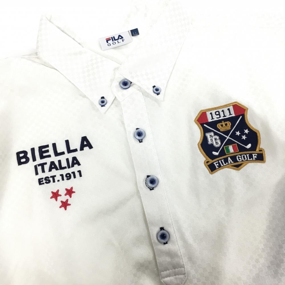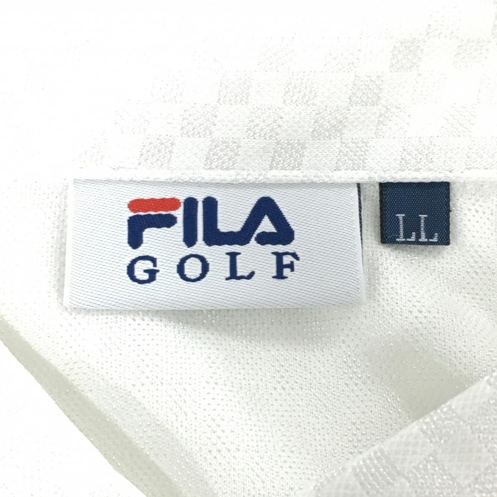 【美品】フィラゴルフ 半袖ポロシャツ 白×ネイビー ブロックチェック地模様 胸元ロゴ メンズ LL ゴルフウェア FILA GOLF