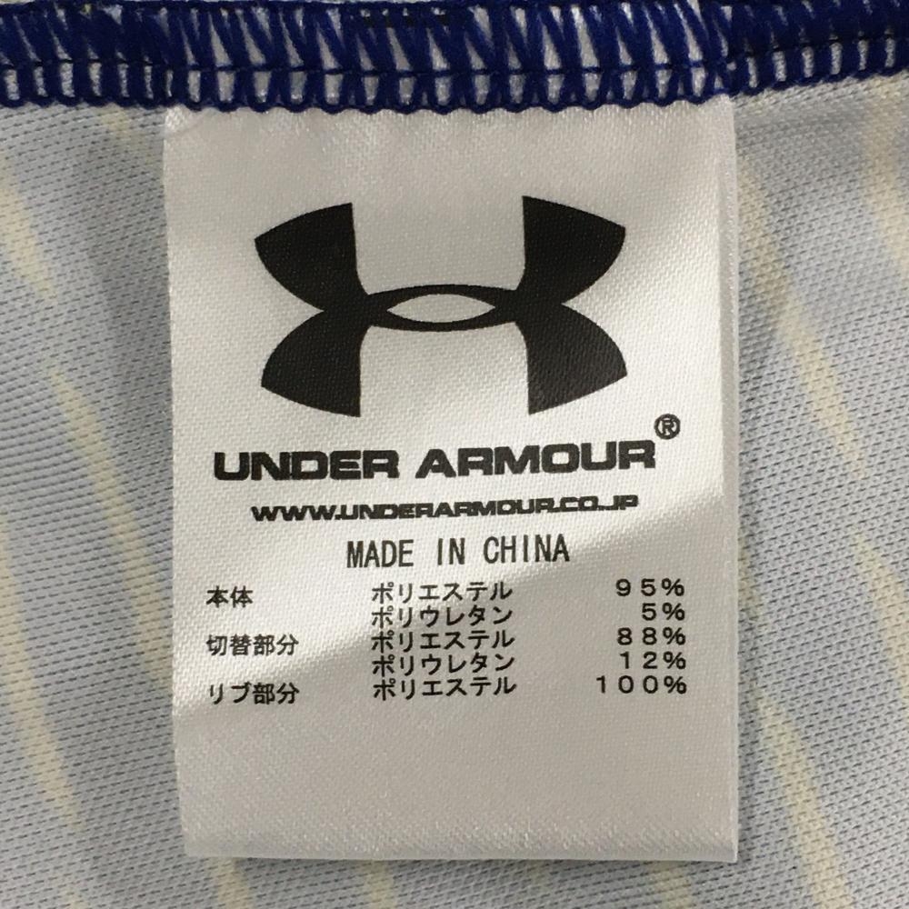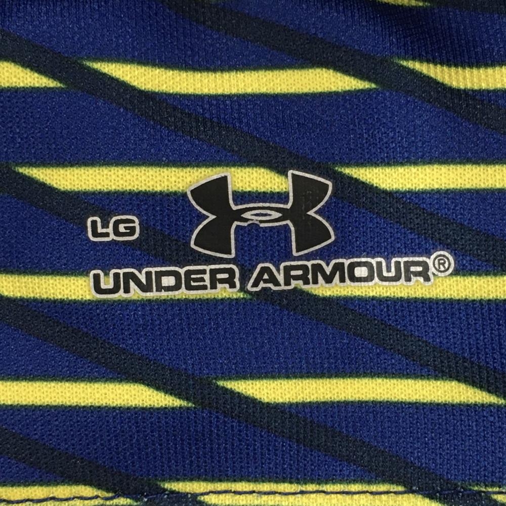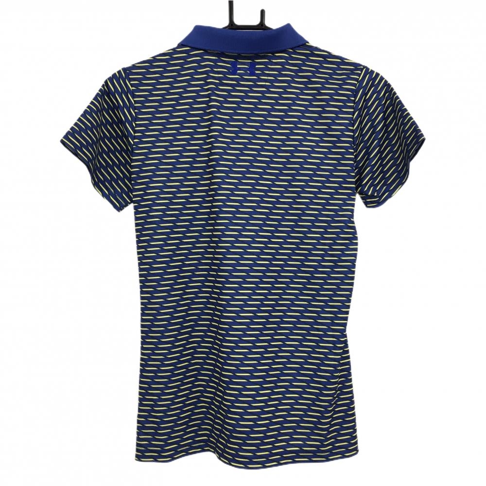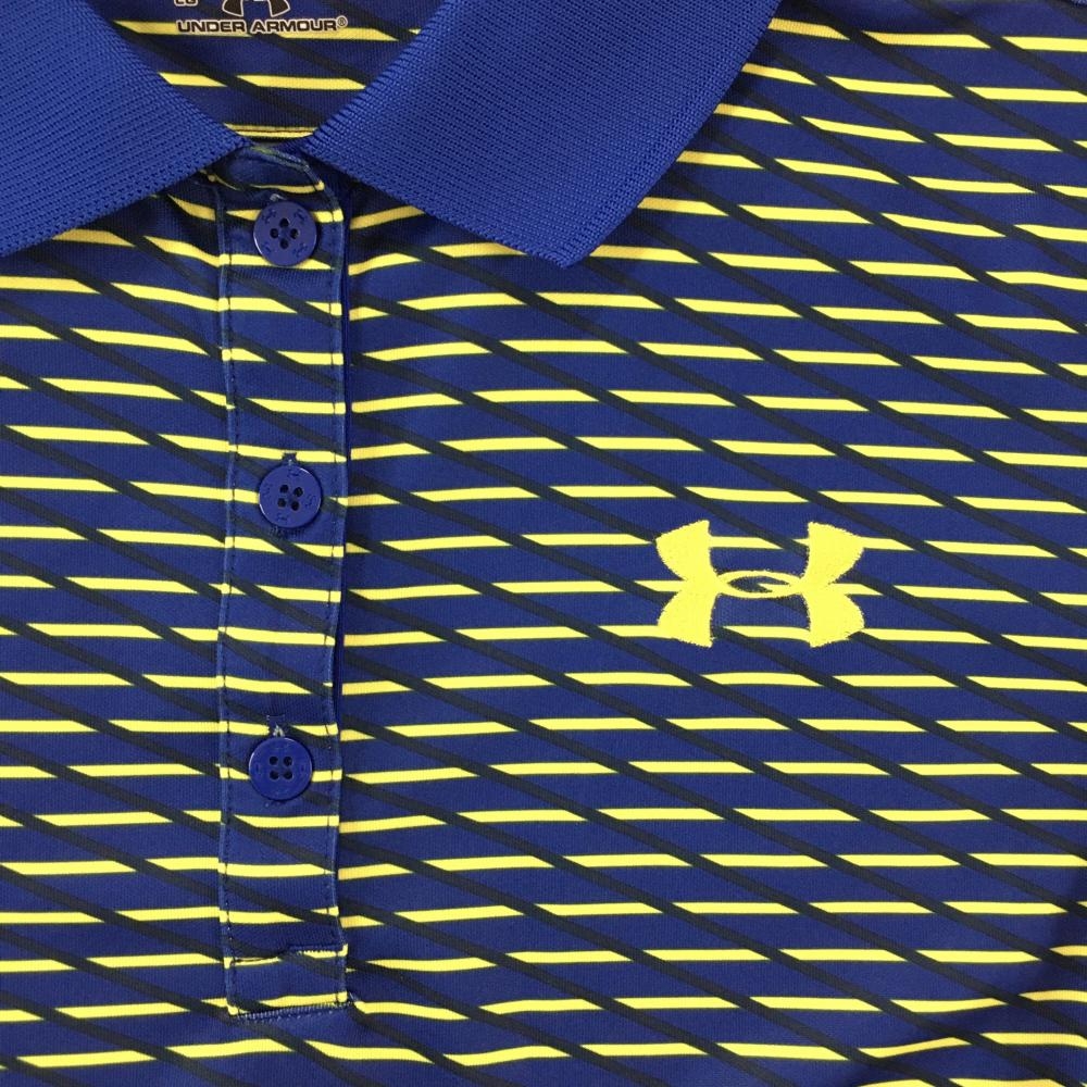 【超美品】アンダーアーマー 半袖ポロシャツ ネイビー×イエロー ボーダー 斜めストライプ レディース LG ゴルフウェア UNDER ARMOUR