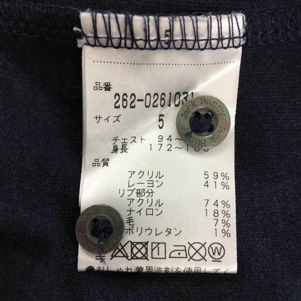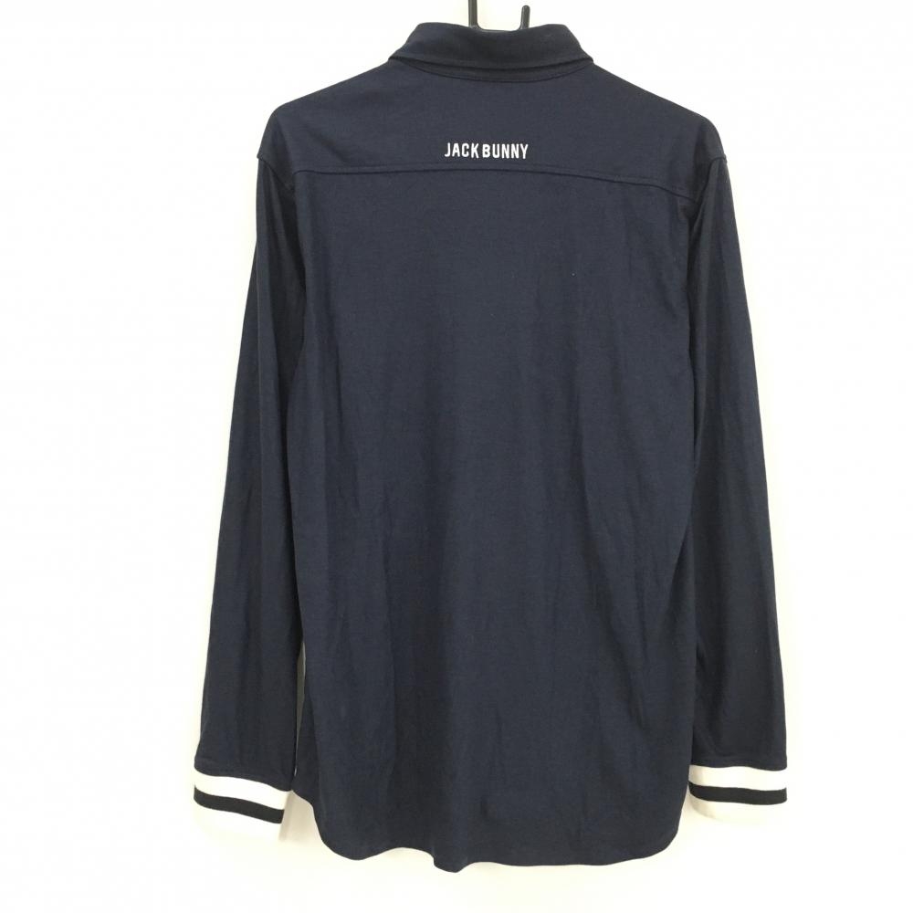 【美品】ジャックバニー 長袖シャツ ネイビー ボタンダウン 袖口ライン メンズ 5(L) ゴルフウェア Jack Bunny