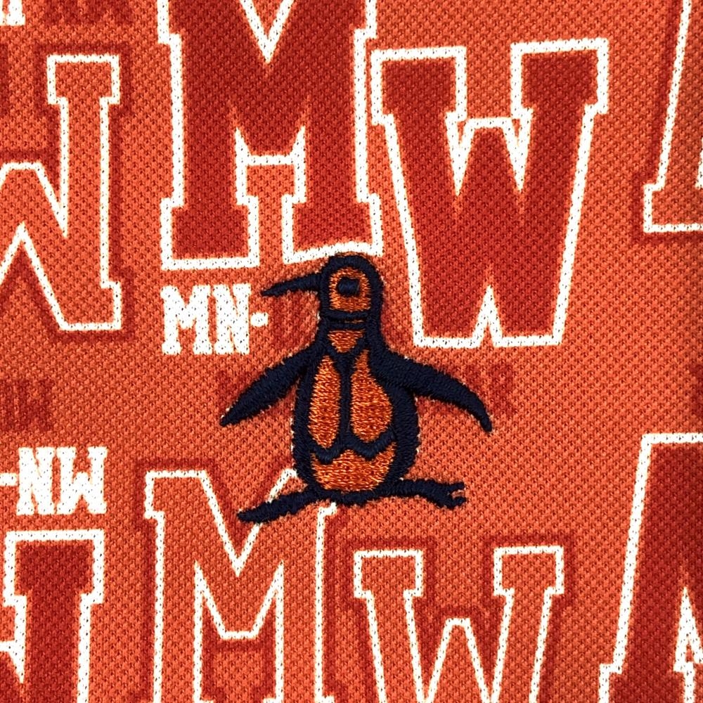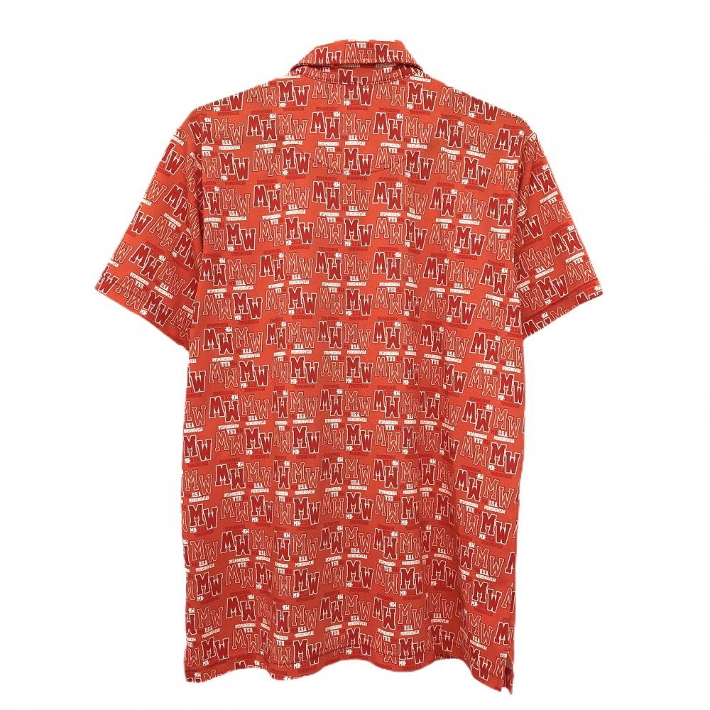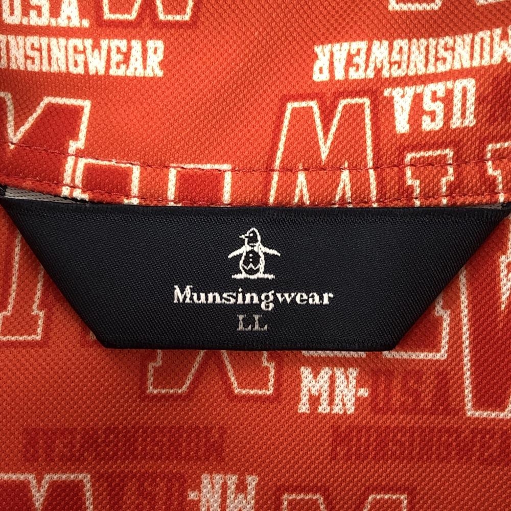 【超美品】マンシングウェア 半袖ポロシャツ オレンジ×白 総柄 ロゴ刺しゅう メンズ LL ゴルフウェア Munsingwear