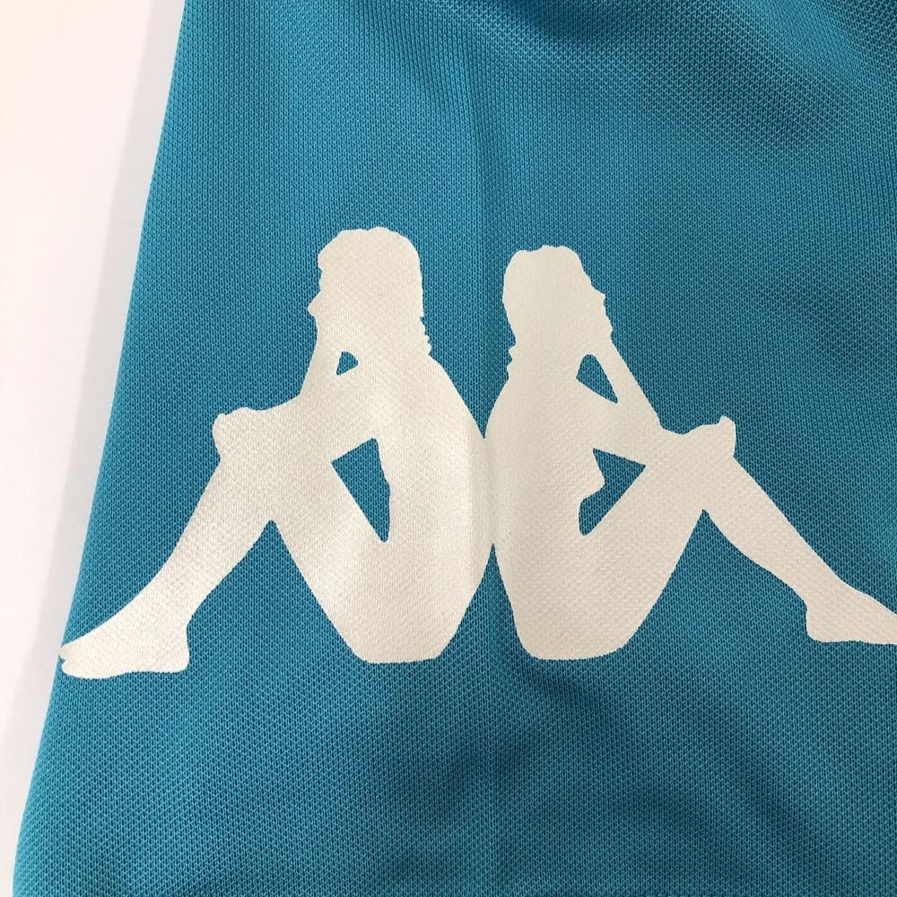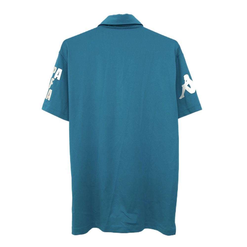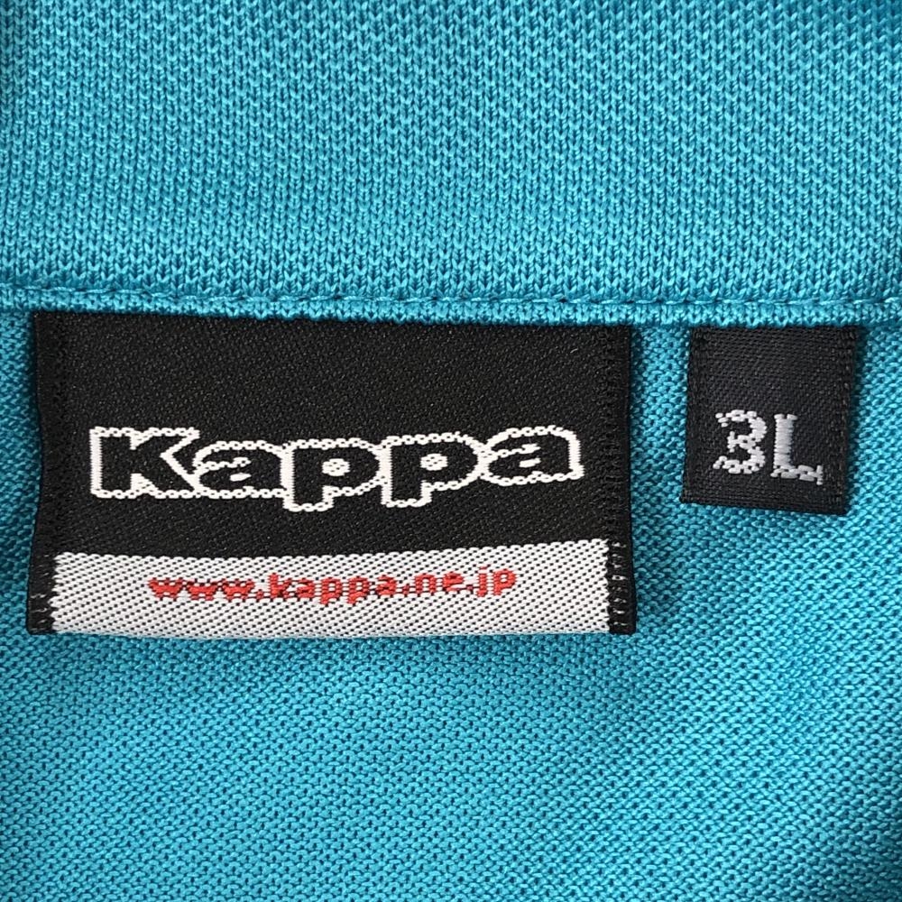 【超美品】カッパ 半袖ポロシャツ ブルー系×シルバー 袖ロゴプリント メンズ 3L ゴルフウェア 大きいサイズ Kappa