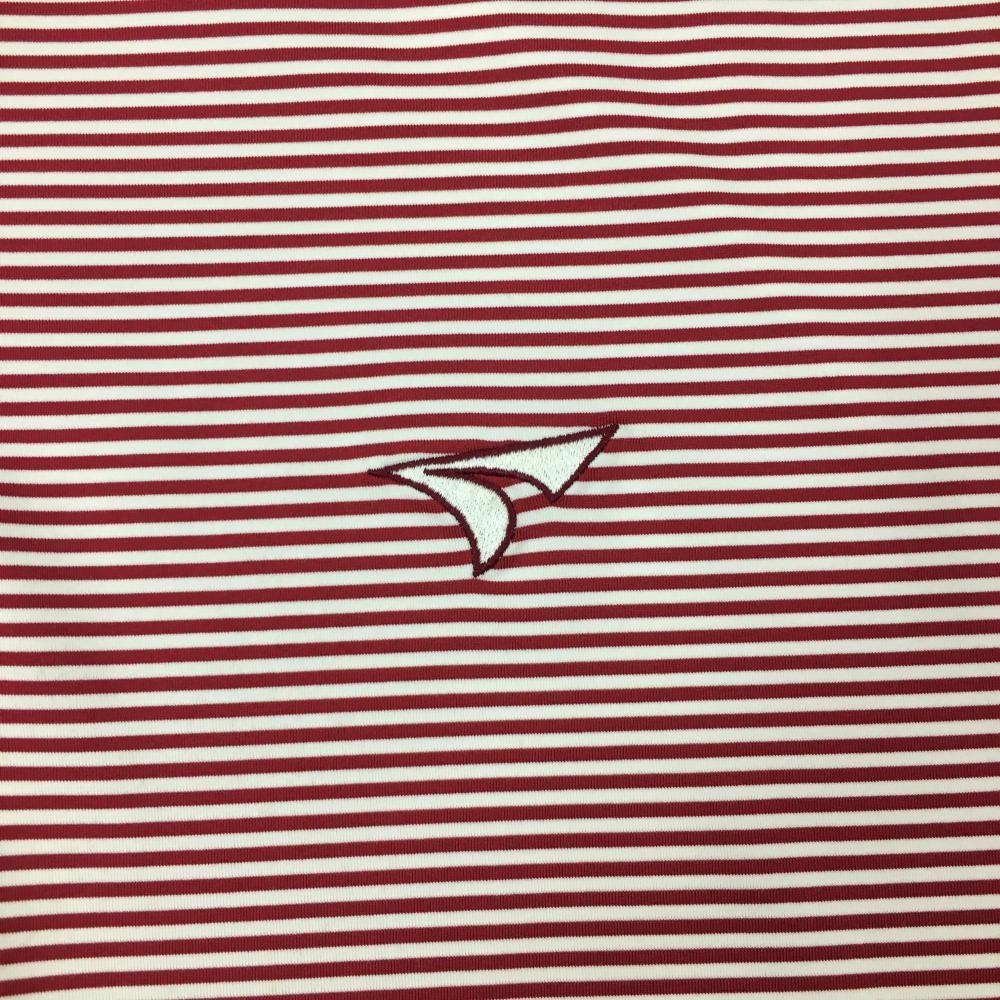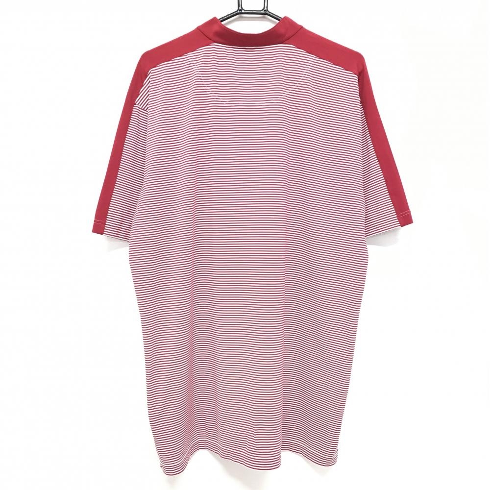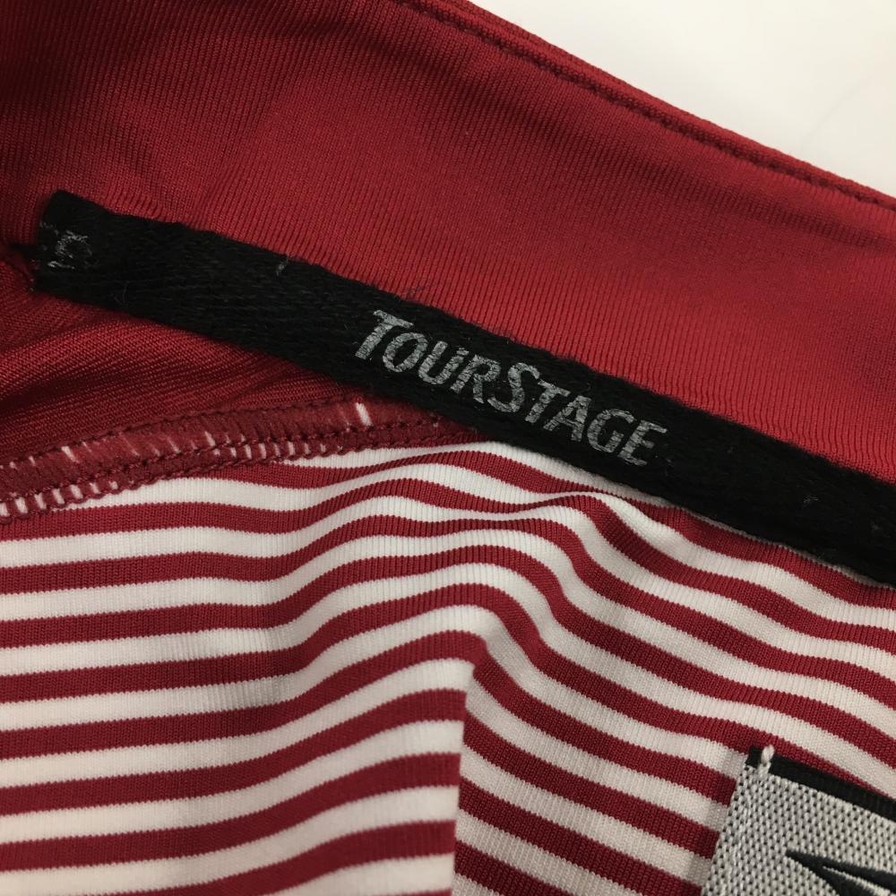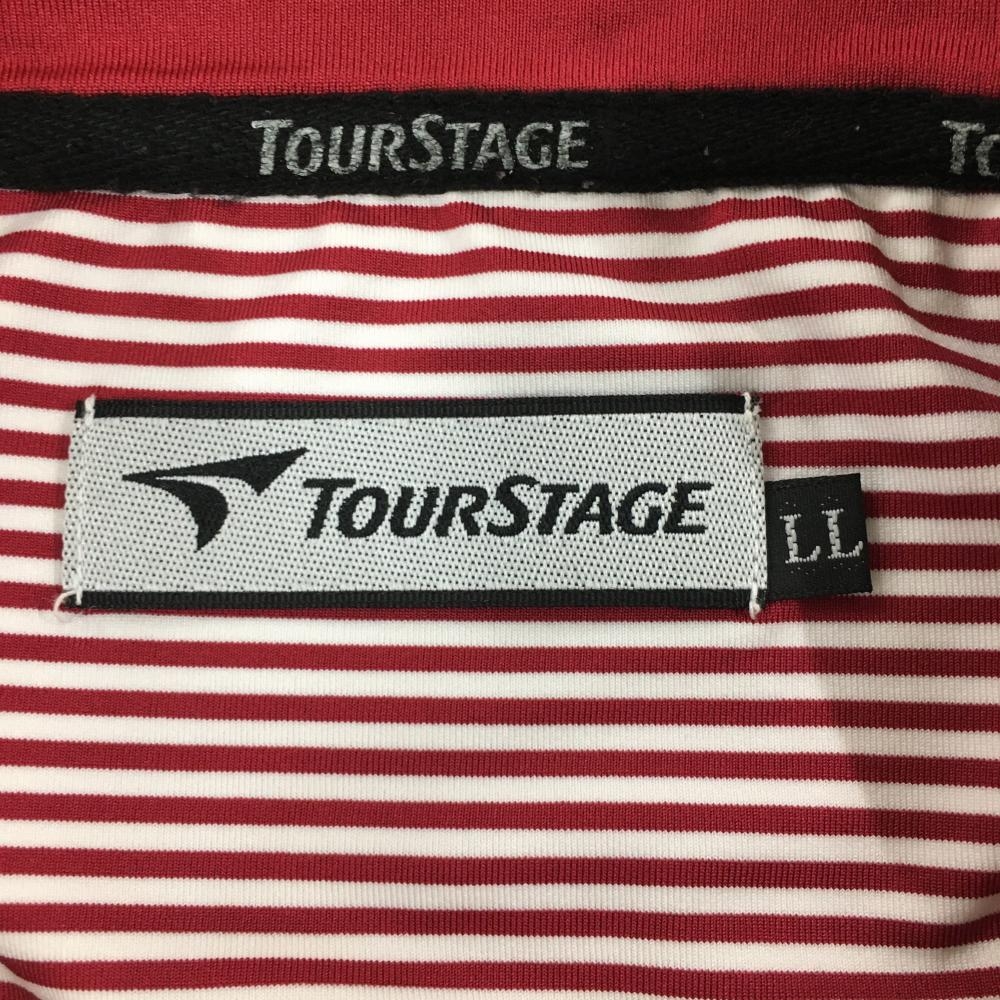 【美品】ツアーステージ 半袖ハイネックシャツ レッド×白 ボーダー ロゴ刺しゅう ハーフジップ メンズ LL ゴルフウェア TOURSTAGE