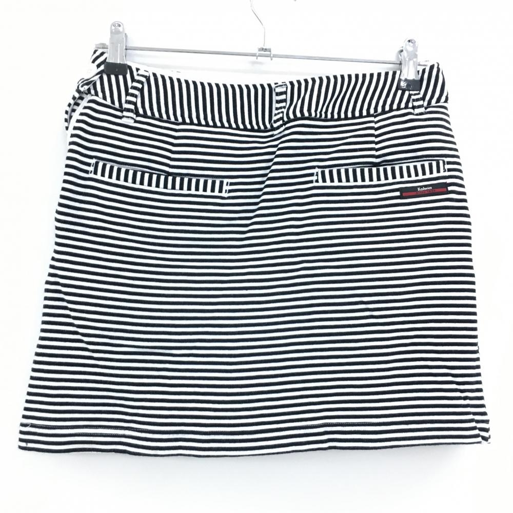 【美品】コルウィン スカート 黒×白 ボーダー バックロゴ ボックスプリーツ レディース M ゴルフウェア Kolwin