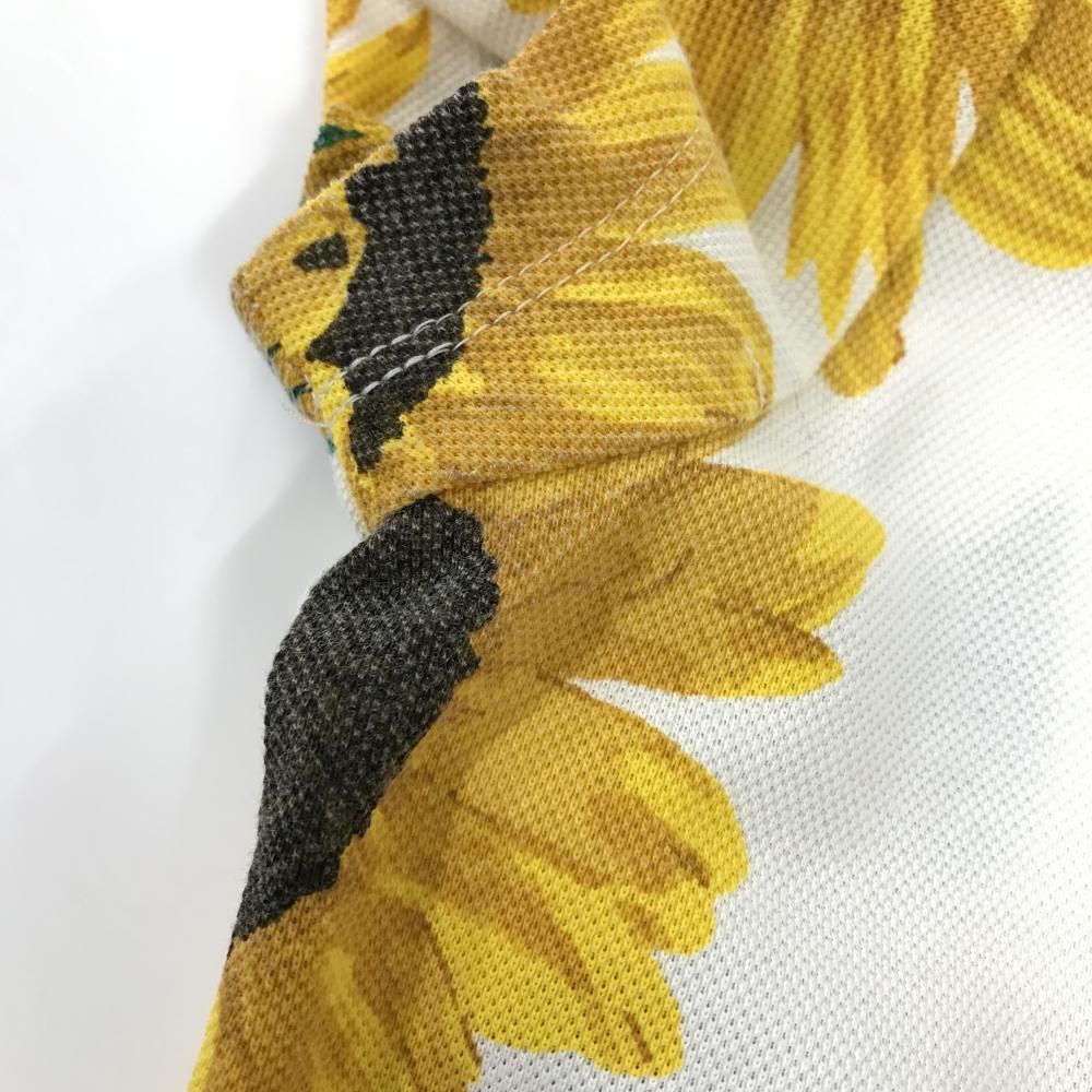 【美品】パーリーゲイツ 半袖ポロワンピース 白×イエロー ひまわり総柄 レディース 0(S) ゴルフウェア PEARLY GATES