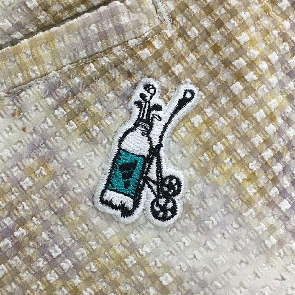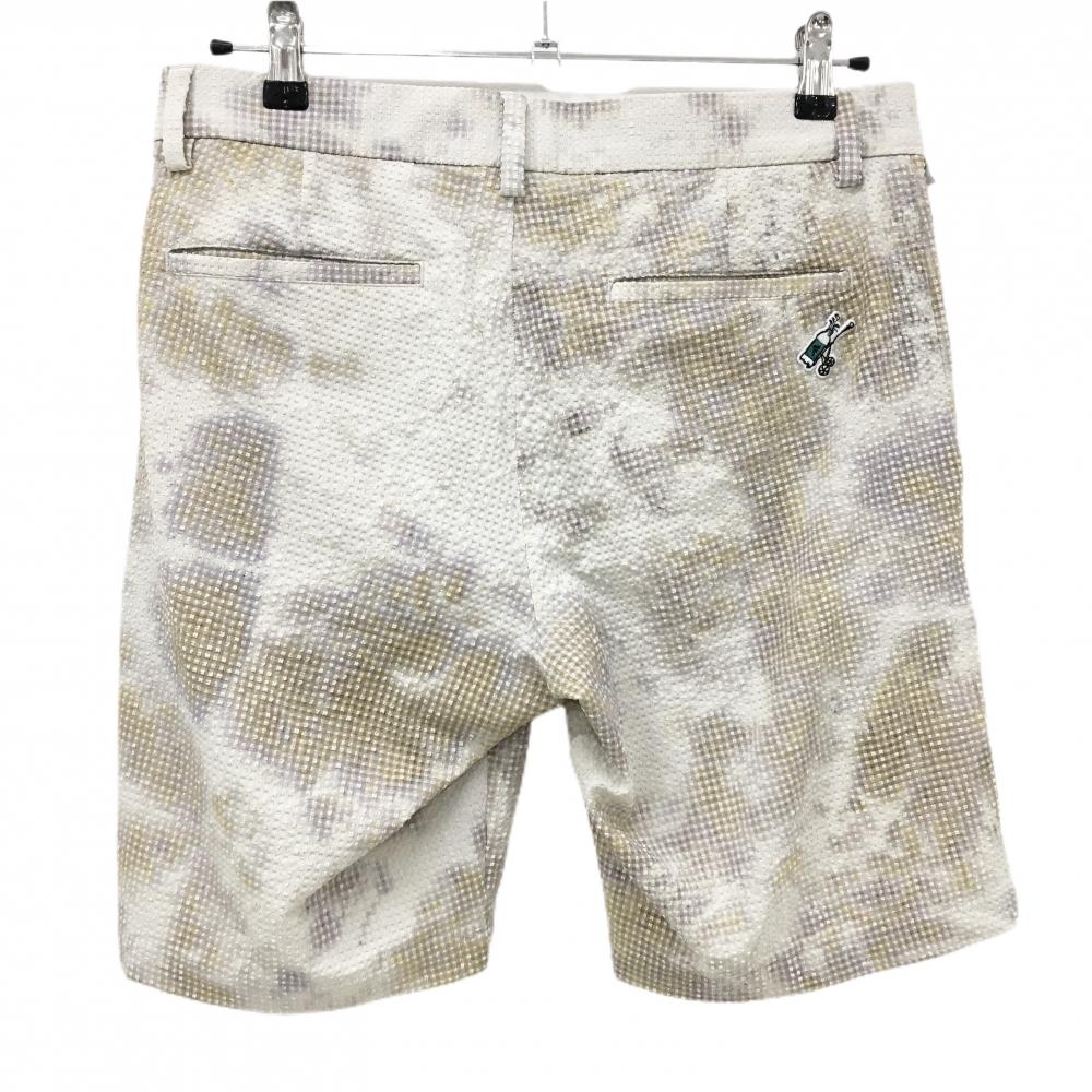 【超美品】アディダス ハーフパンツ ライトベージュ×ライトパープル 総柄 凸凹織生地 メンズ 82 ゴルフウェア adidas
