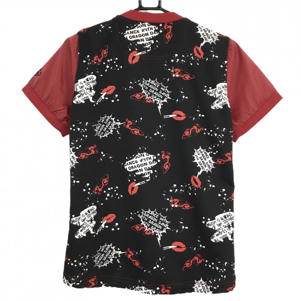 【超美品】ダンスウィズドラゴン 半袖スニード レッド×黒 フロントレオパード柄ロゴ レディース 2(M) ゴルフウェア Dance With Dragon