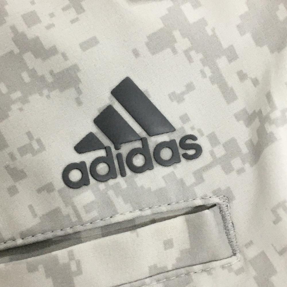 【美品】アディダス ハーフパンツ オフホワイト×ライトグレー モザイクカモフラ調柄 ストレッチ メンズ 88 ゴルフウェア adidas