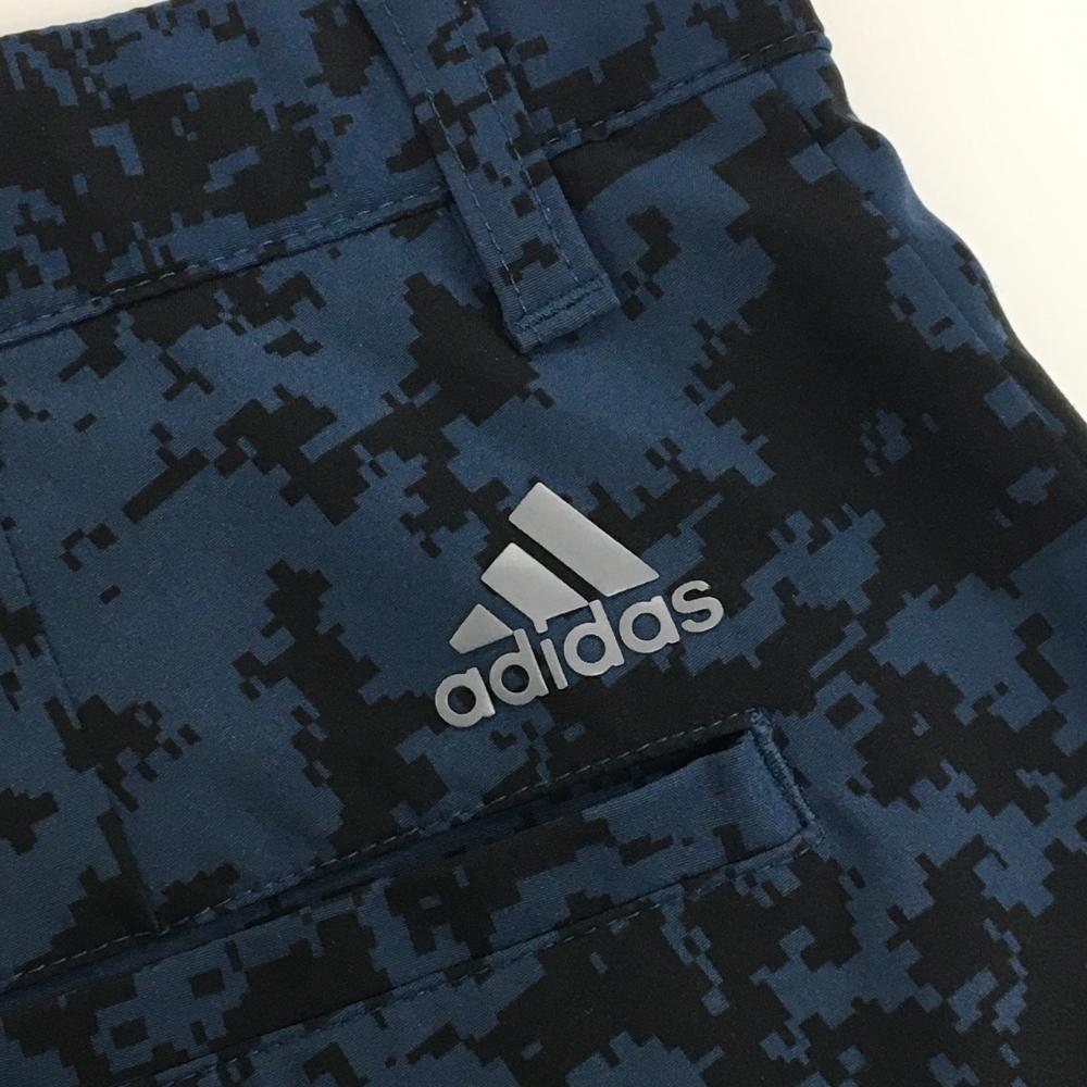 【超美品】アディダス ハーフパンツ ネイビー×黒 モザイクカモフラ調柄 ストレッチ メンズ 88 ゴルフウェア adidas