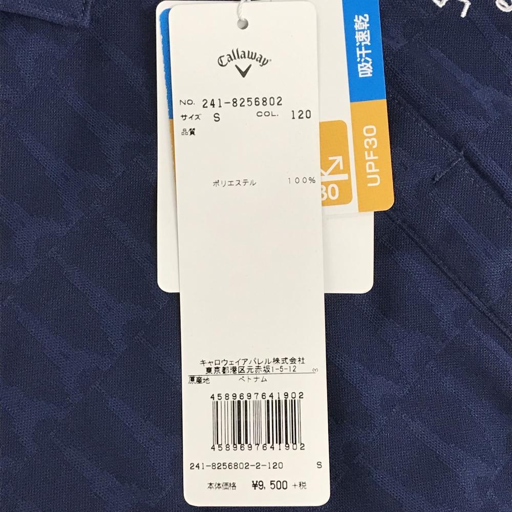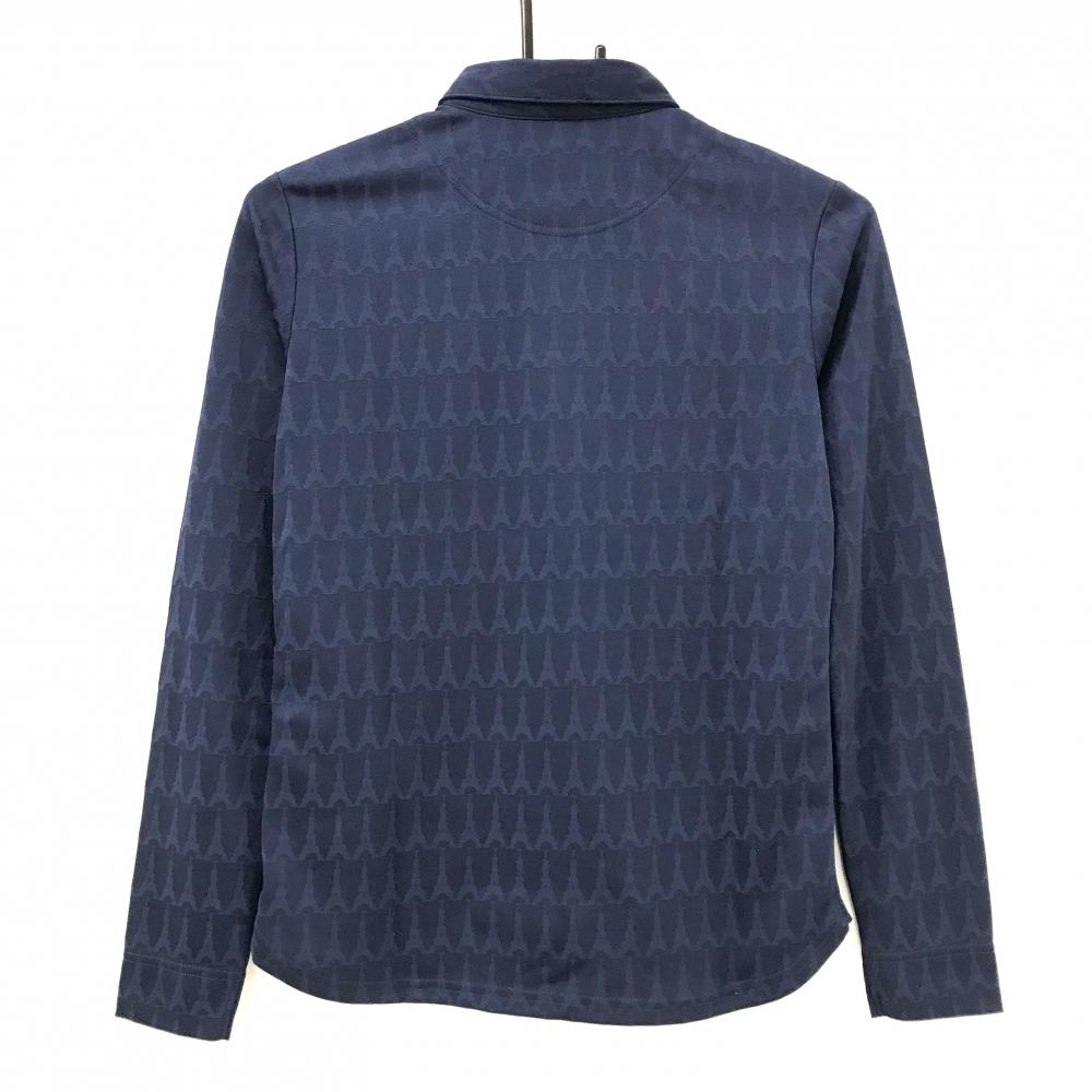 【新品】キャロウェイ 長袖ポロシャツ ネイビー 地模様 ロゴ刺しゅう レディース S ゴルフウェア Callaway