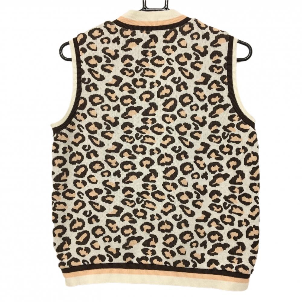 【超美品】アルチビオ ニットベスト ライトベージュ×ブラウン レオパード柄 ウール混 裏地付 レディース 38(M) ゴルフウェア archivio