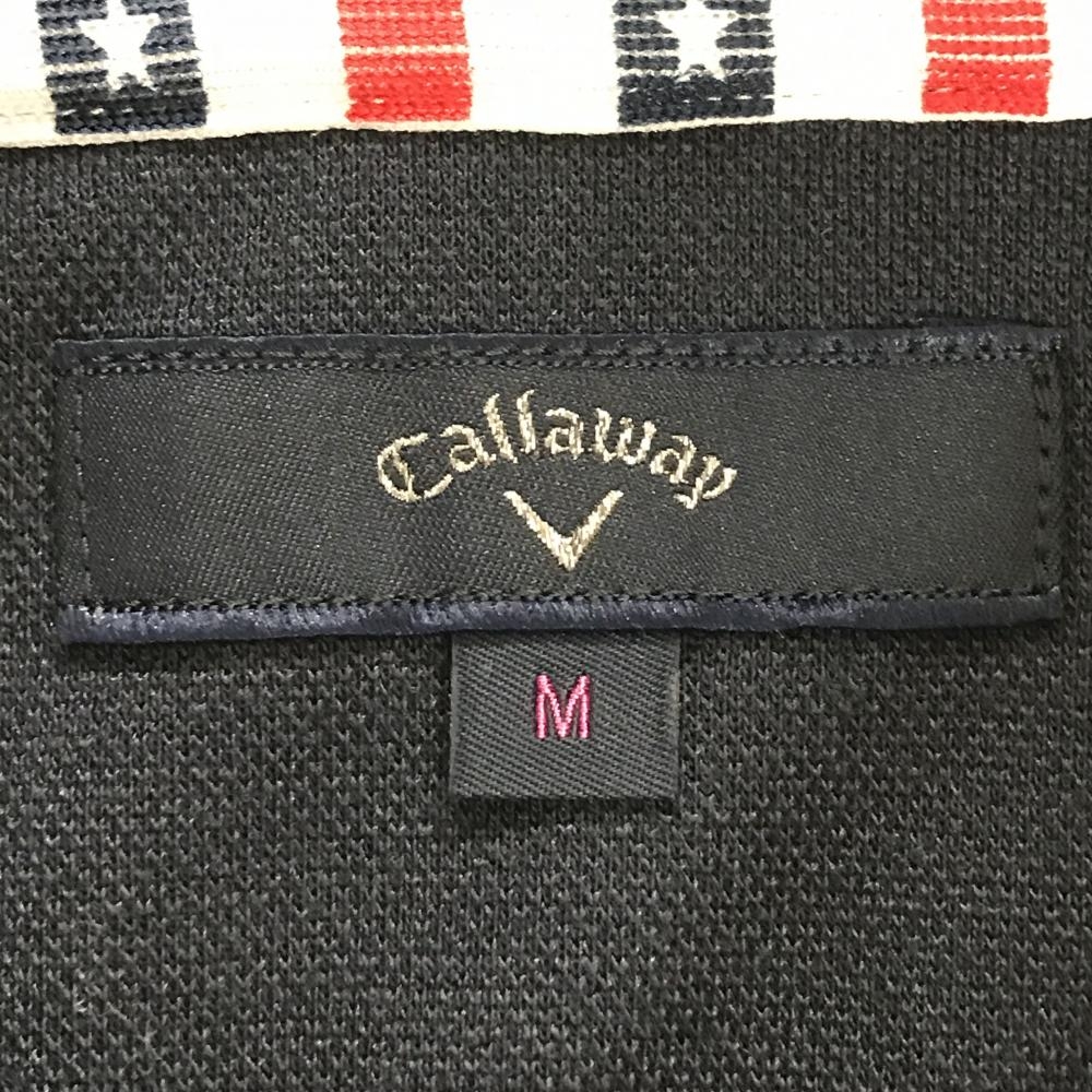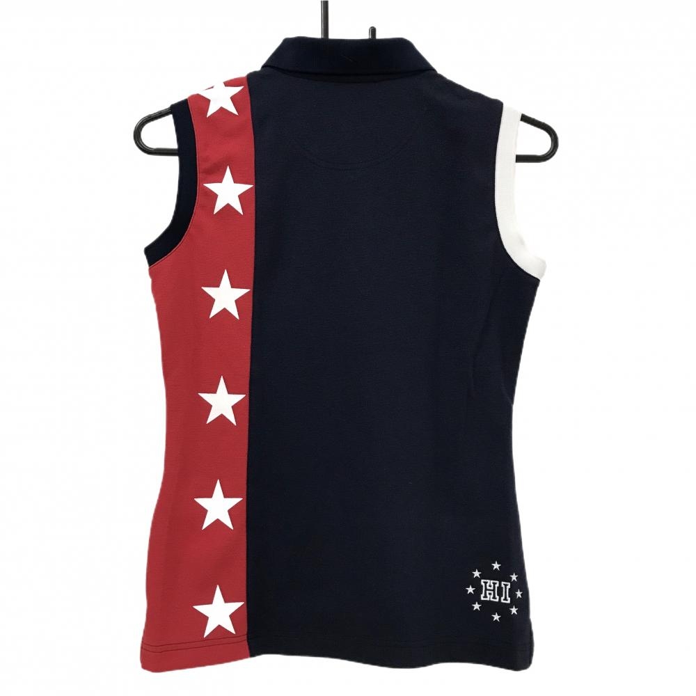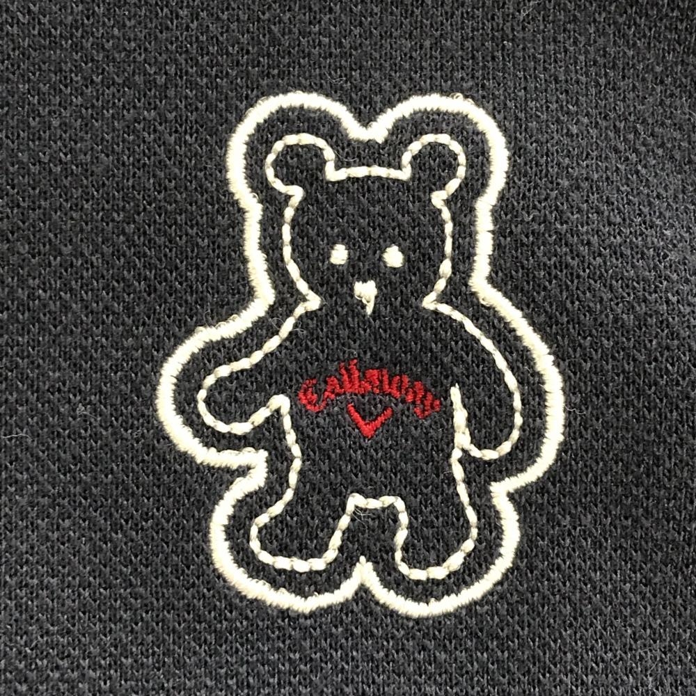 【超美品】キャロウェイ ノースリーブポロシャツ ネイビー×白 一部ボーダー 背面星 べア刺しゅう レディース M ゴルフウェア Callaway
