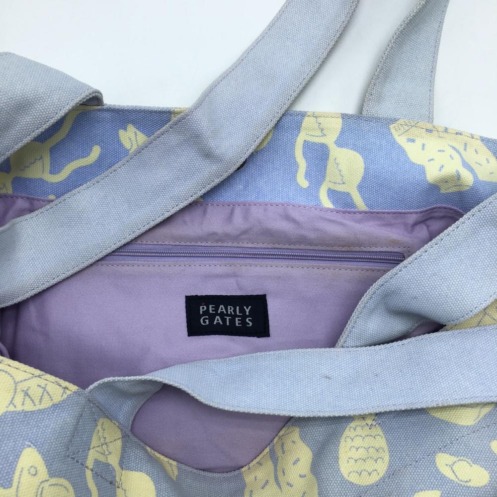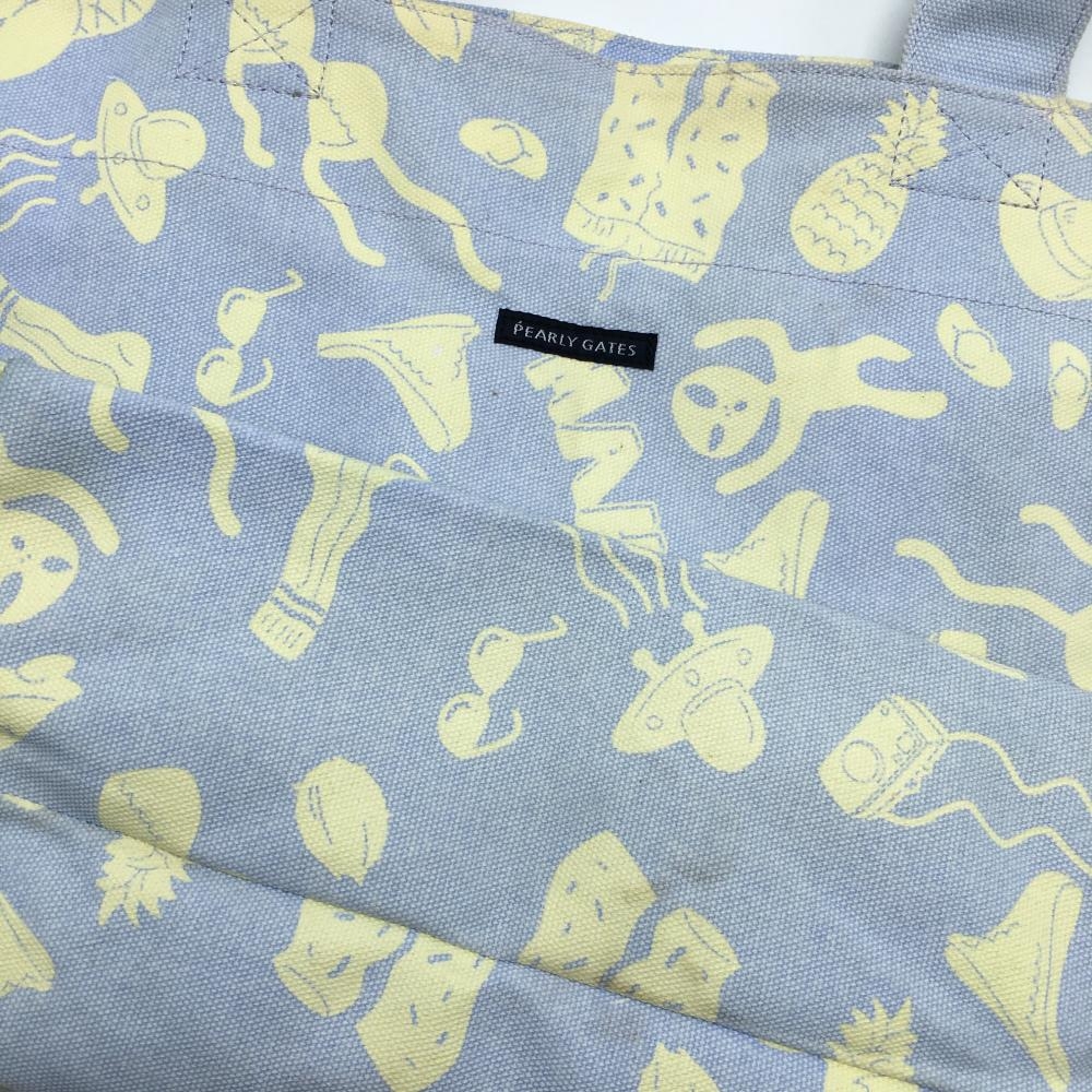 パーリーゲイツ ビッグトートバッグ ライトブルー系×アイボリー 総柄 宇宙人 内ポケット付ゴルフ PEARLY GATES