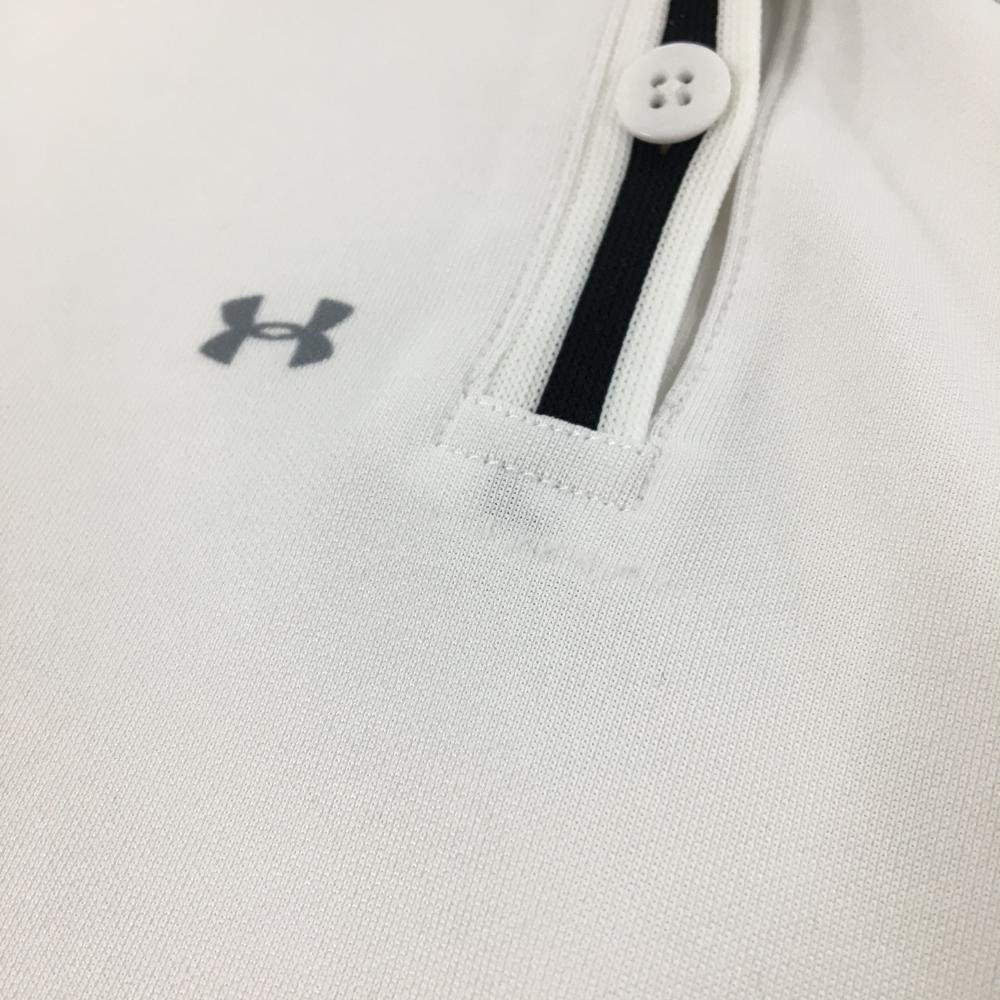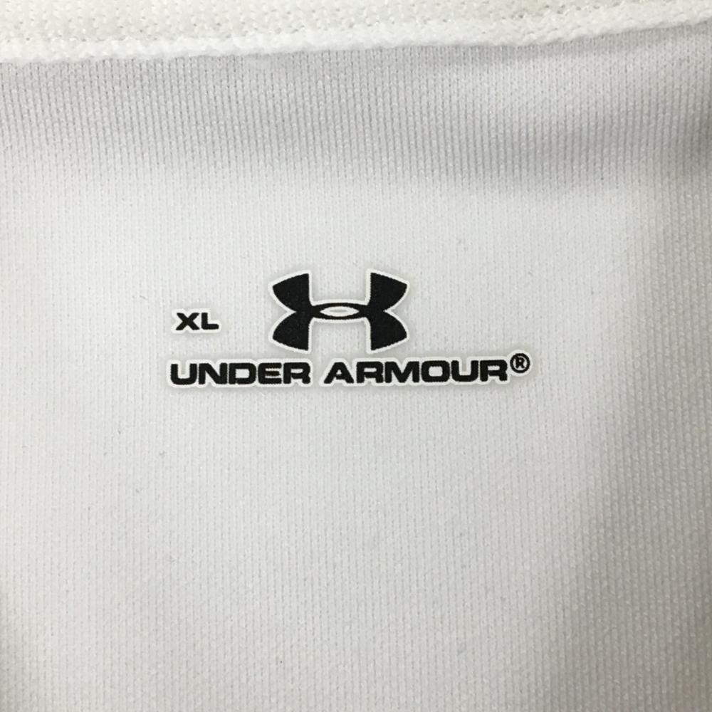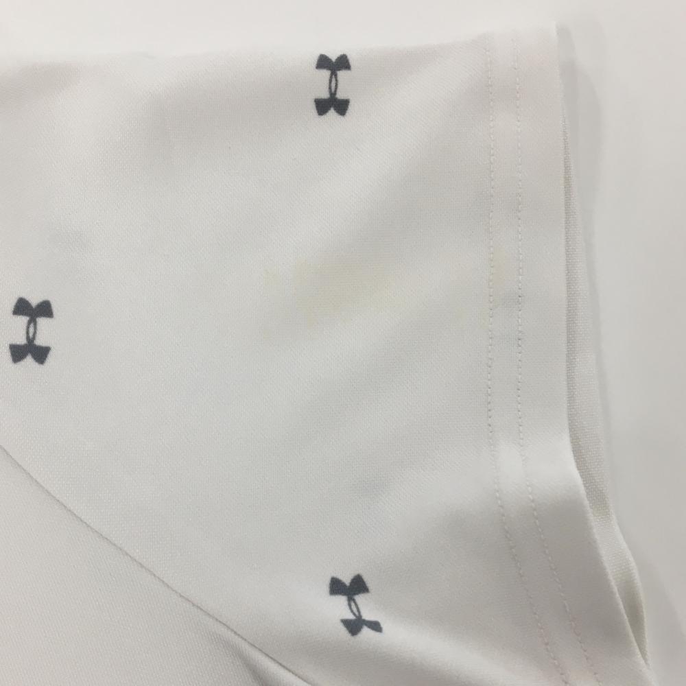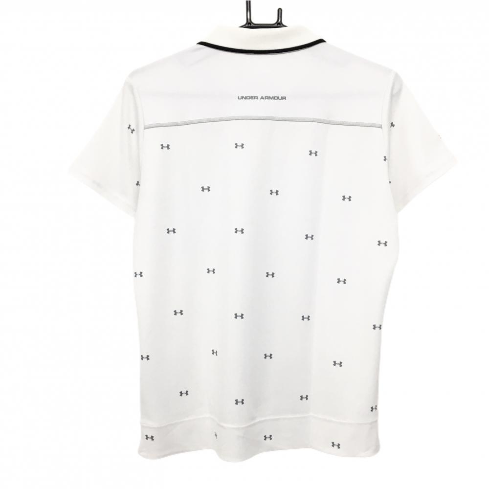 【美品】アンダーアーマー 半袖ポロシャツ 白×グレー ロゴ総柄 レディース XL ゴルフウェア UNDER ARMOUR