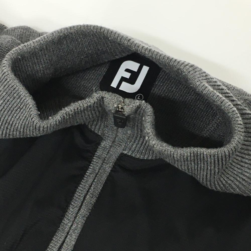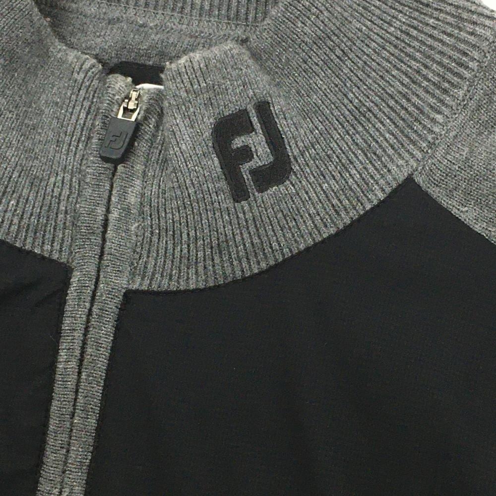 フットジョイ 切替ニットジャケット 杢グレー×黒 ダブルジップ ウール混 メンズ L ゴルフウェア FootJoy