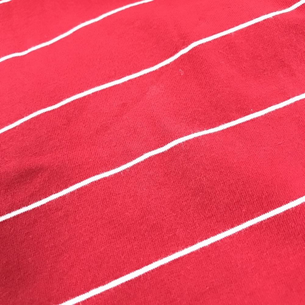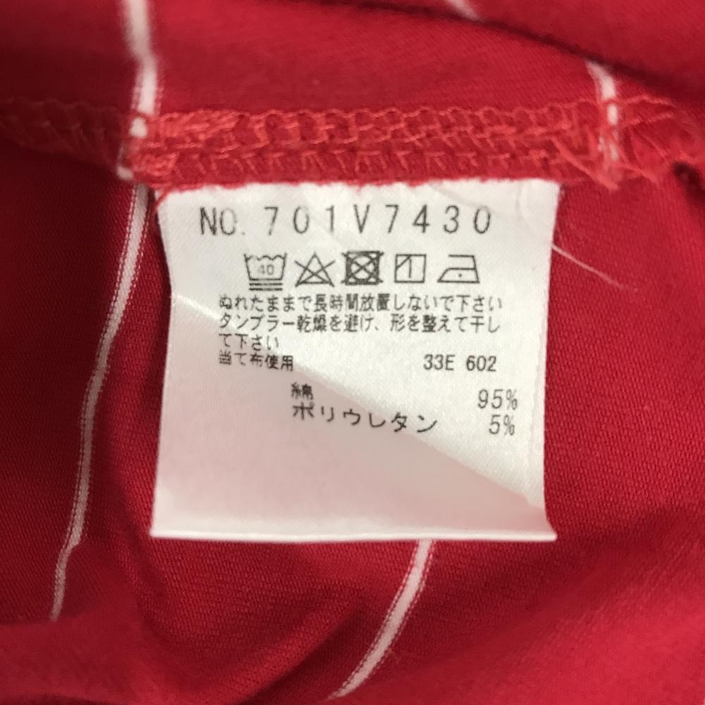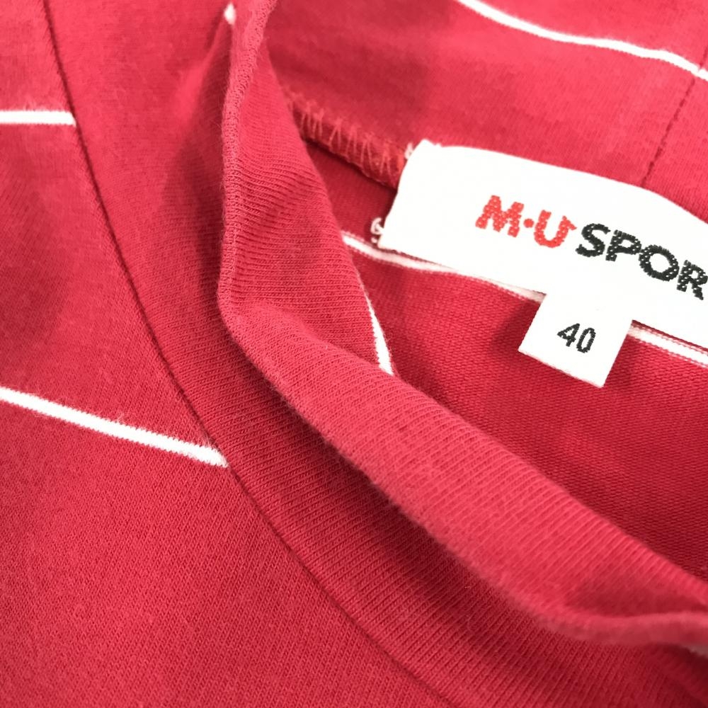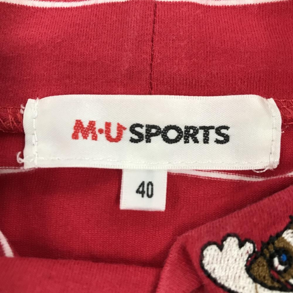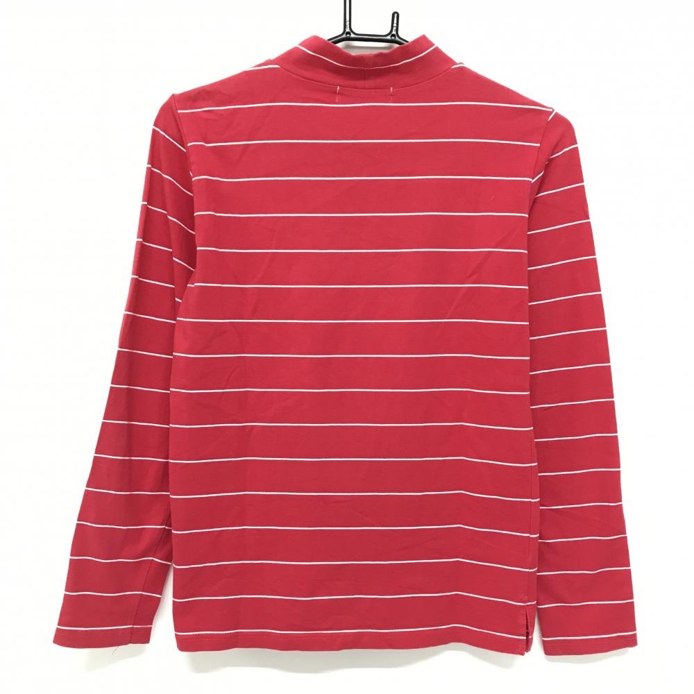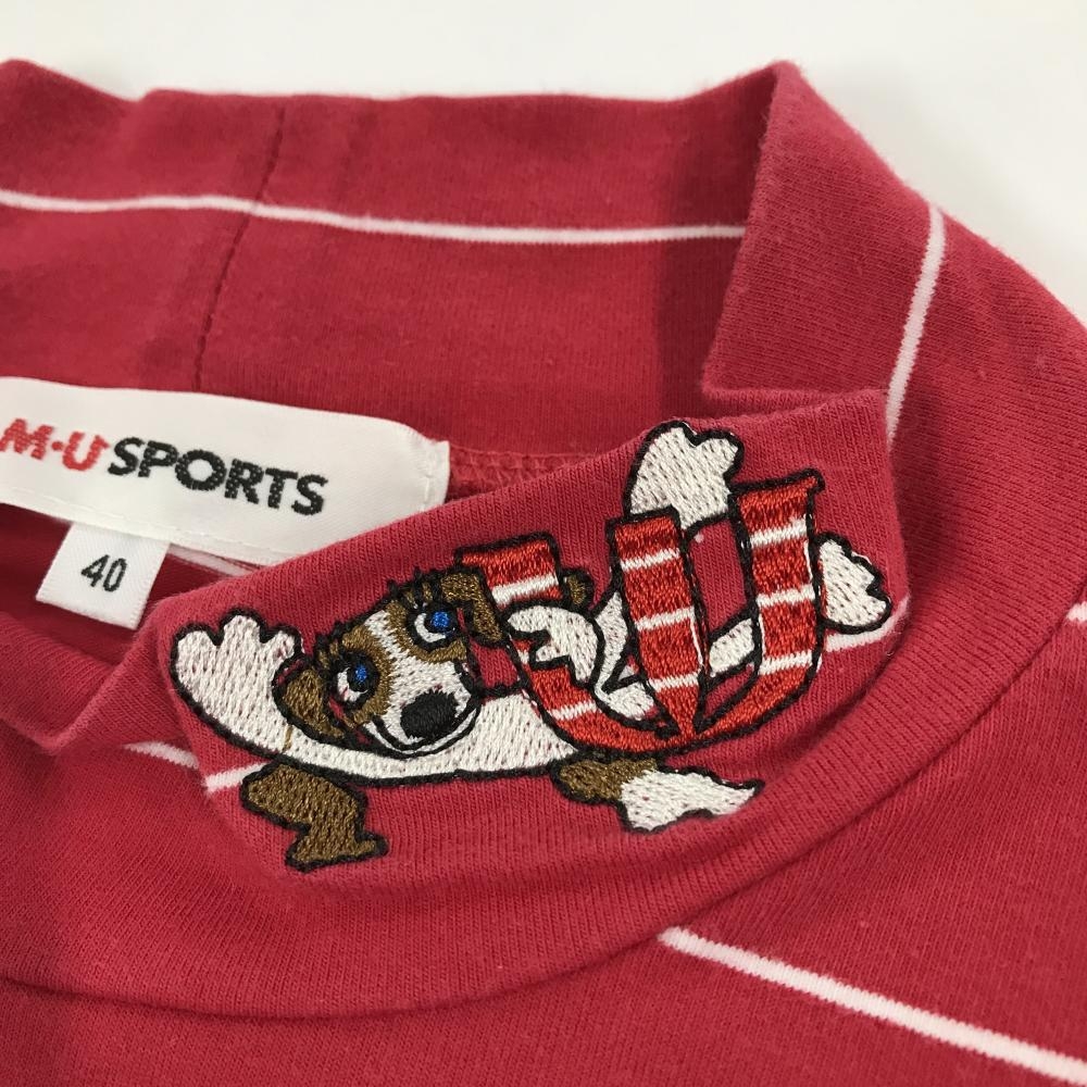 【美品】MUスポーツ 長袖ハイネックシャツ レッド×白 ボーダー ネックロゴ レディース 40(M) ゴルフウェア M・U SPORTS