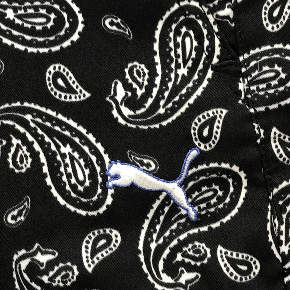 【超美品】プーマ ハーフパンツ 黒×白 ペイズリー ロゴ刺しゅう メンズ 79 ゴルフウェア PUMA