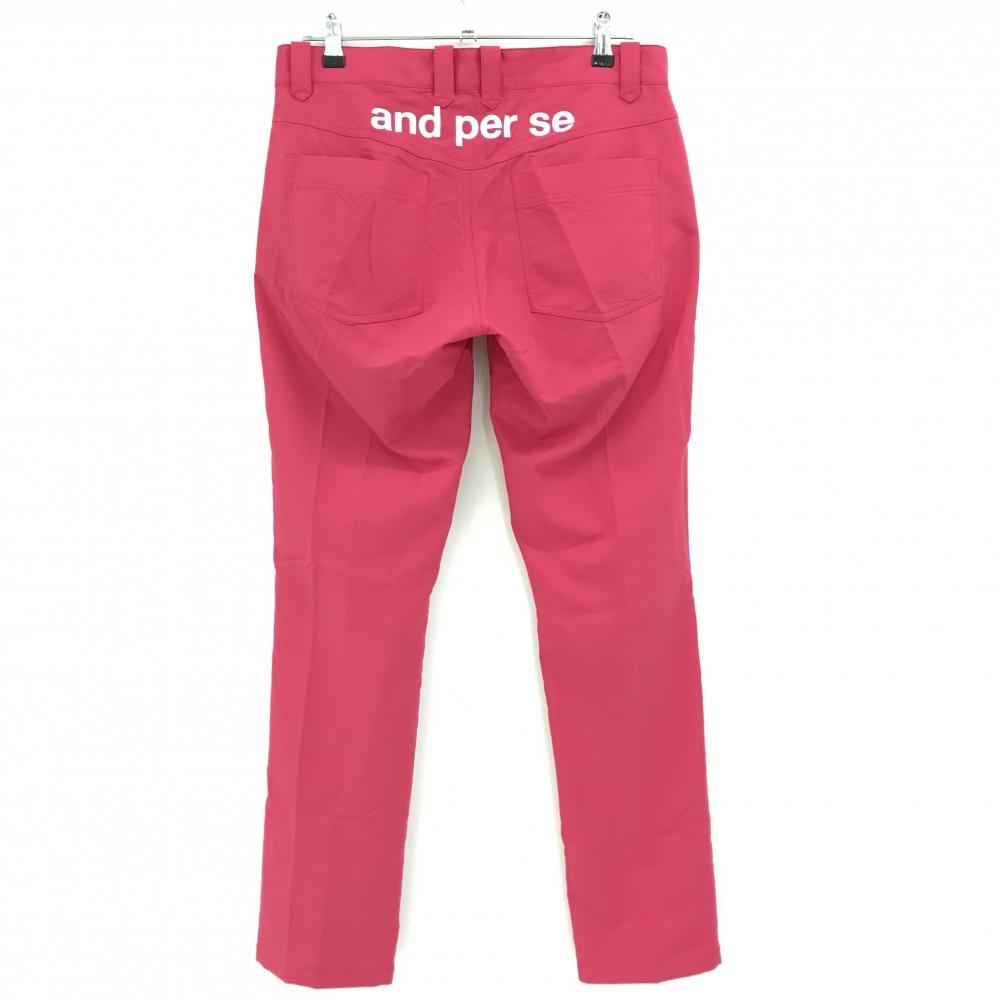 【美品】アンパスィ パンツ ピンク×白 ロゴワッペン バックプリント メンズ 82 ゴルフウェア and per se