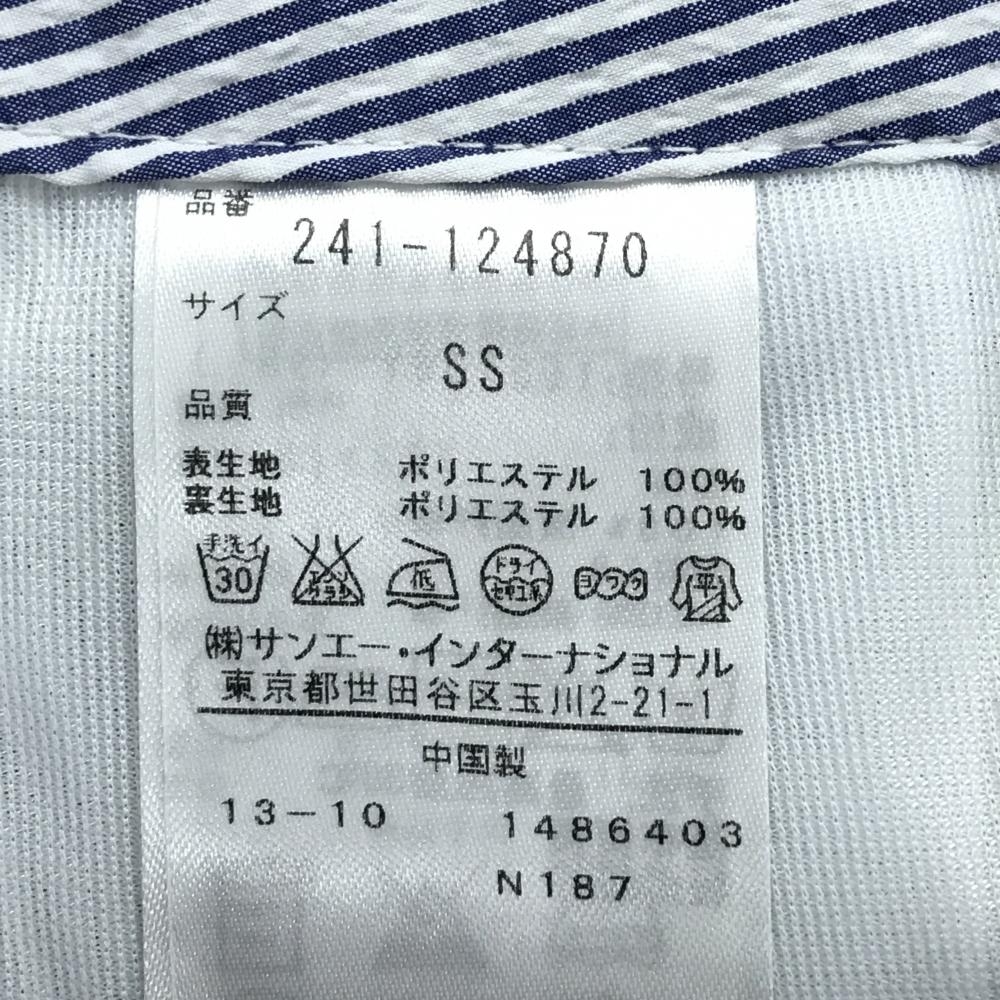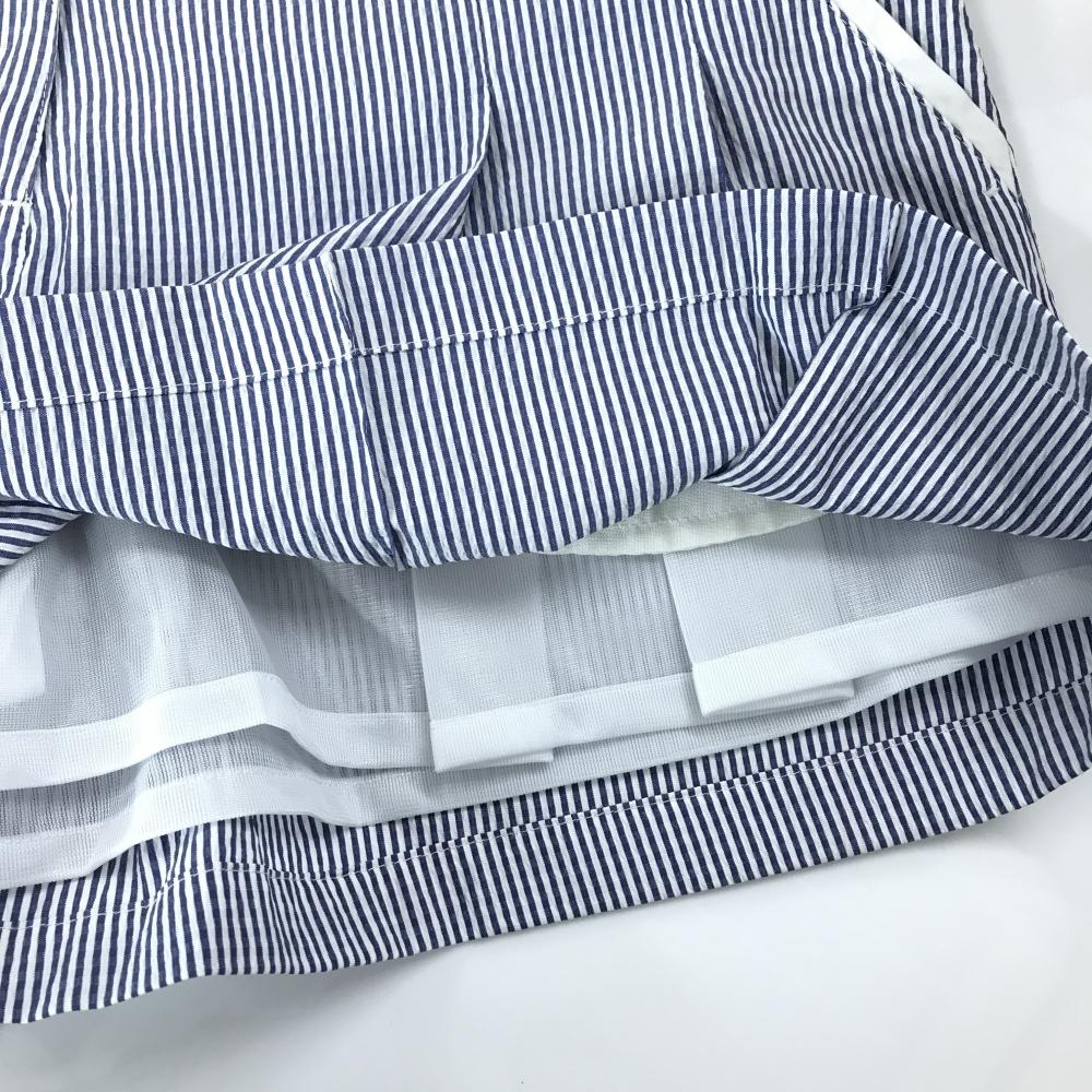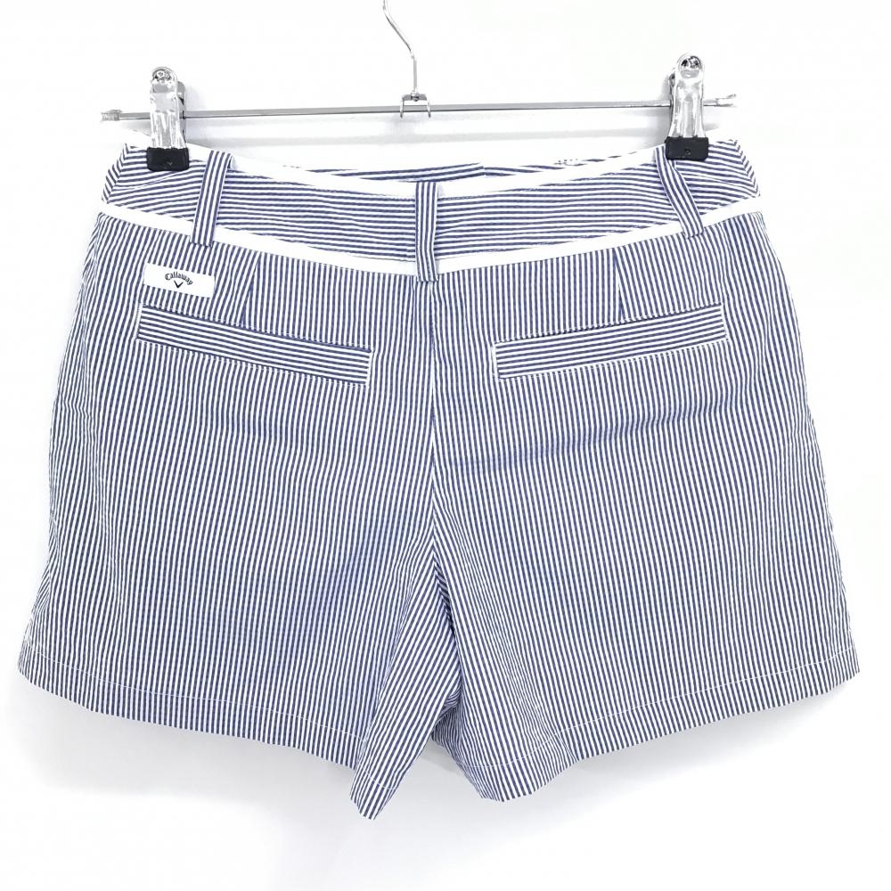 【超美品】キャロウェイ キュロットスカート 白×ネイビー ストライプ サッカー生地 バックロゴ レディース SS ゴルフウェア Callaway
